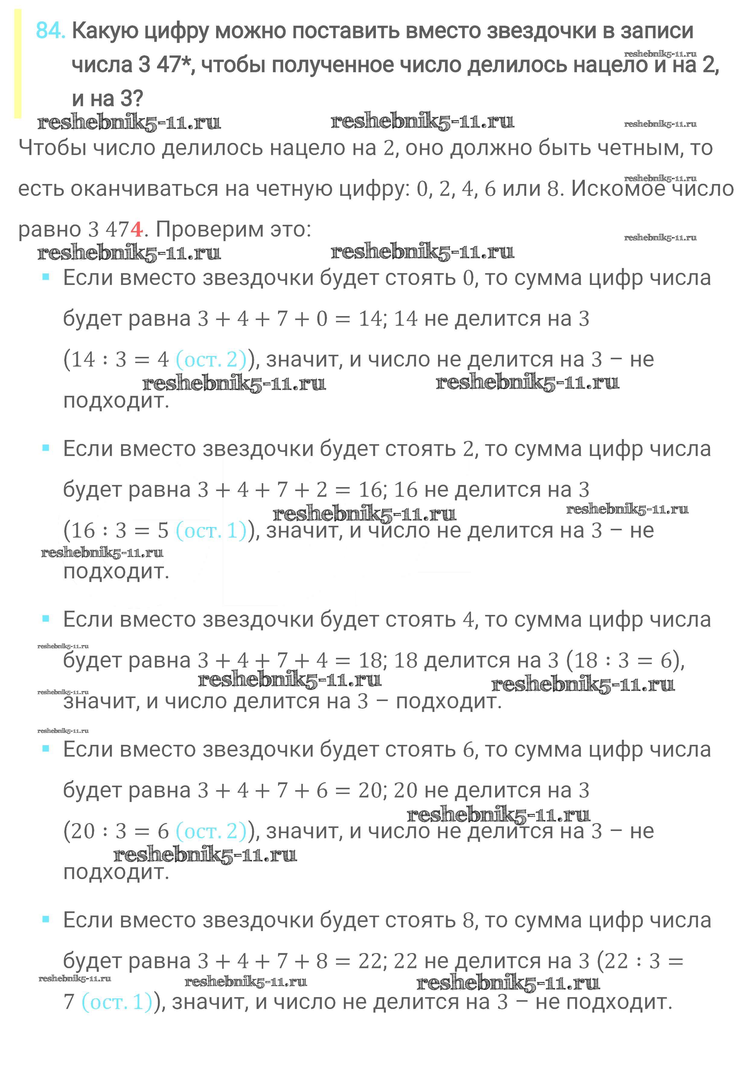 Готовая домашняя работа с ответами по Математике за 6 класс Мерзляк, Полонский, Якир Учебник Алгоритм успеха Вентана-граф 2016 ФГОС - Глава 1. Делимость натуральных чисел (упражнения) 84