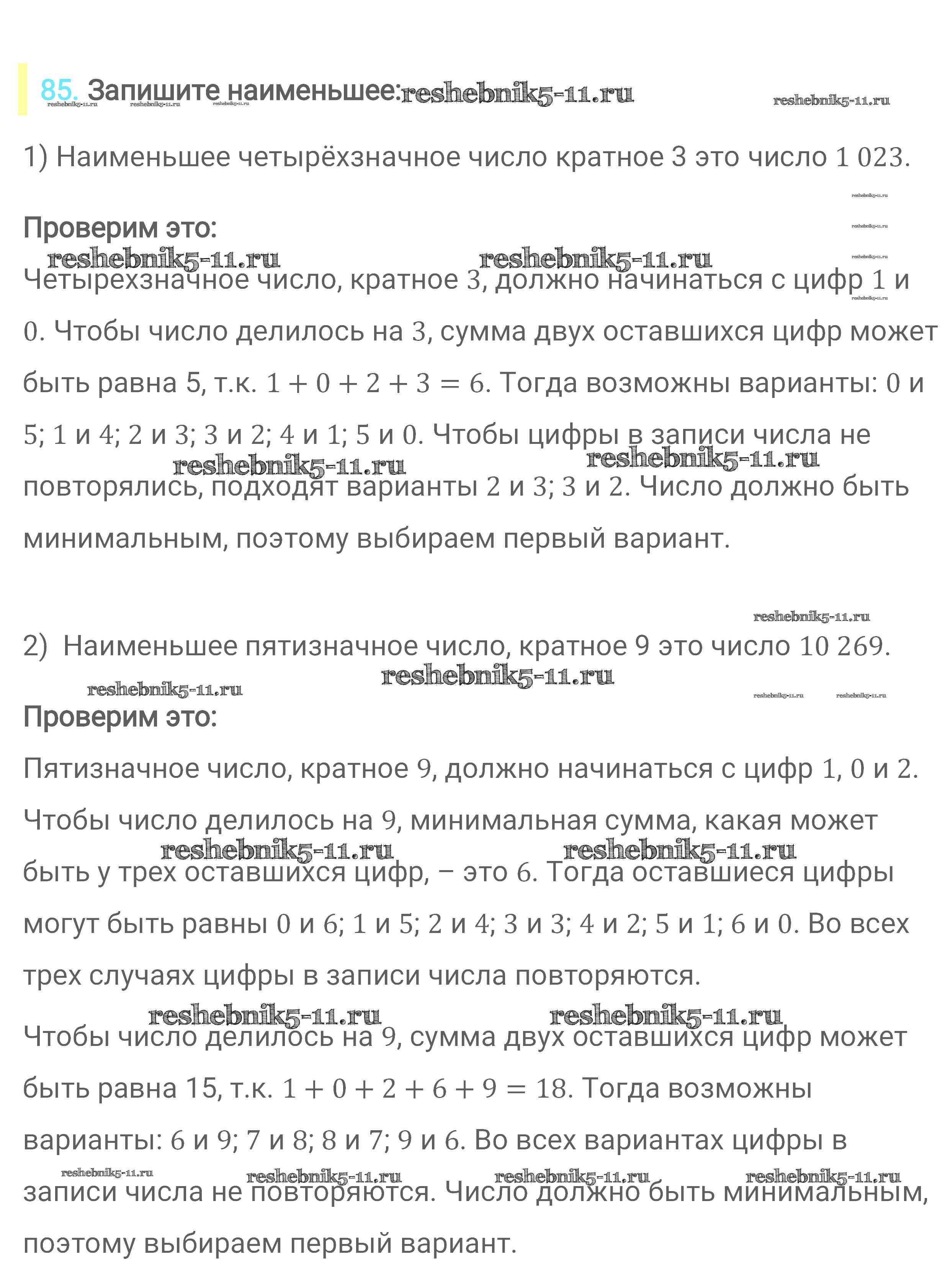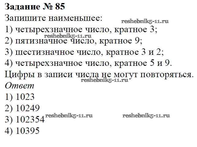 Готовая домашняя работа с ответами по Математике за 6 класс Мерзляк, Полонский, Якир Учебник Алгоритм успеха Вентана-граф 2016 ФГОС - Глава 1. Делимость натуральных чисел (упражнения) 85