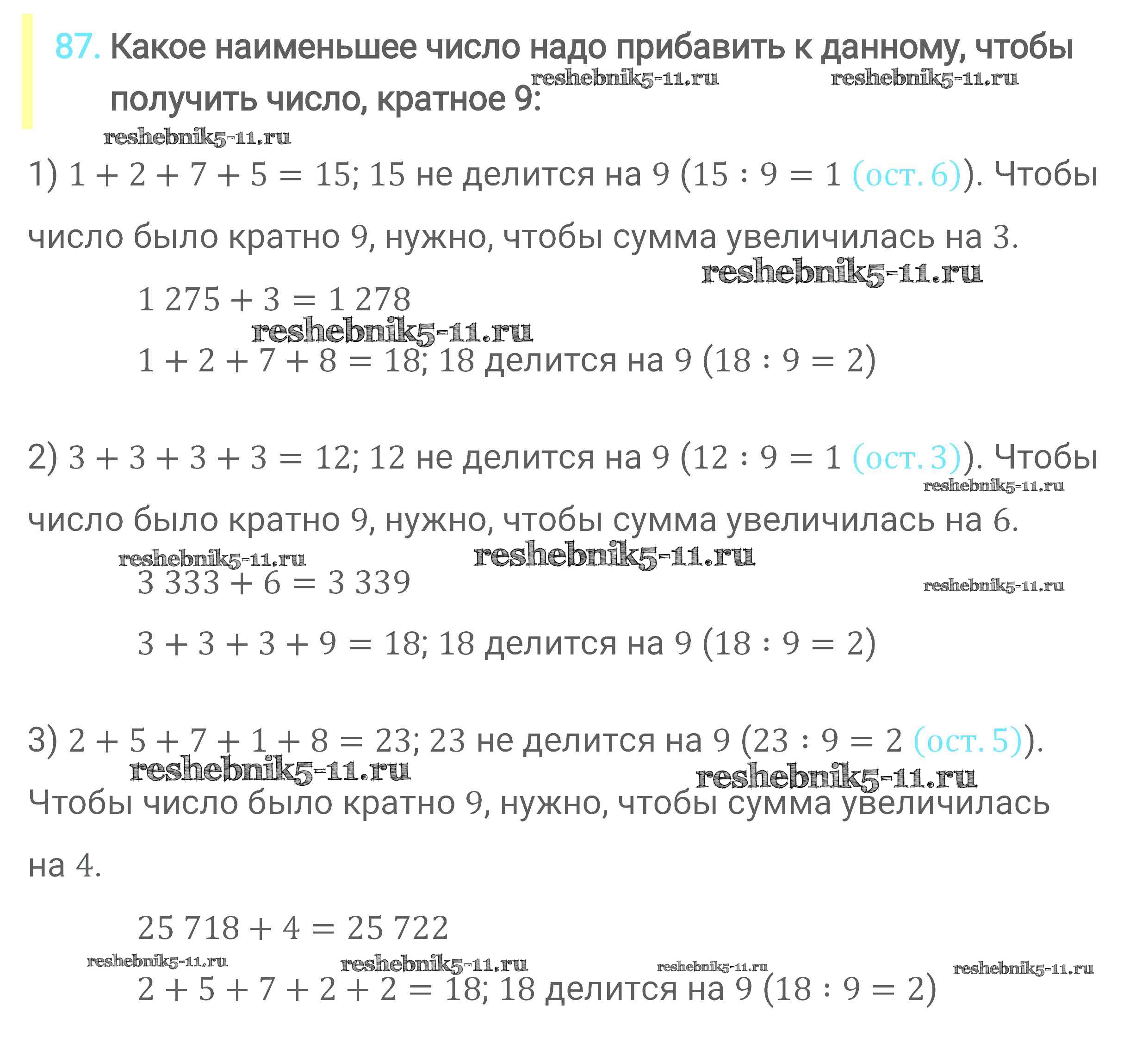 Готовая домашняя работа с ответами по Математике за 6 класс Мерзляк, Полонский, Якир Учебник Алгоритм успеха Вентана-граф 2016 ФГОС - Глава 1. Делимость натуральных чисел (упражнения) 87