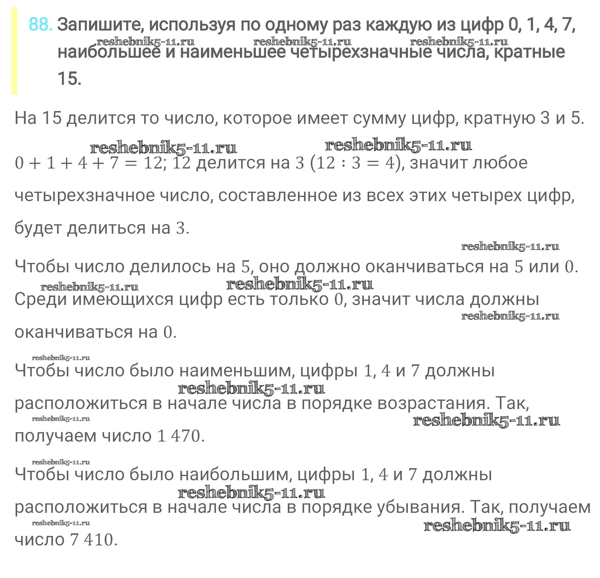 Готовая домашняя работа с ответами по Математике за 6 класс Мерзляк, Полонский, Якир Учебник Алгоритм успеха Вентана-граф 2016 ФГОС - Глава 1. Делимость натуральных чисел (упражнения) 88
