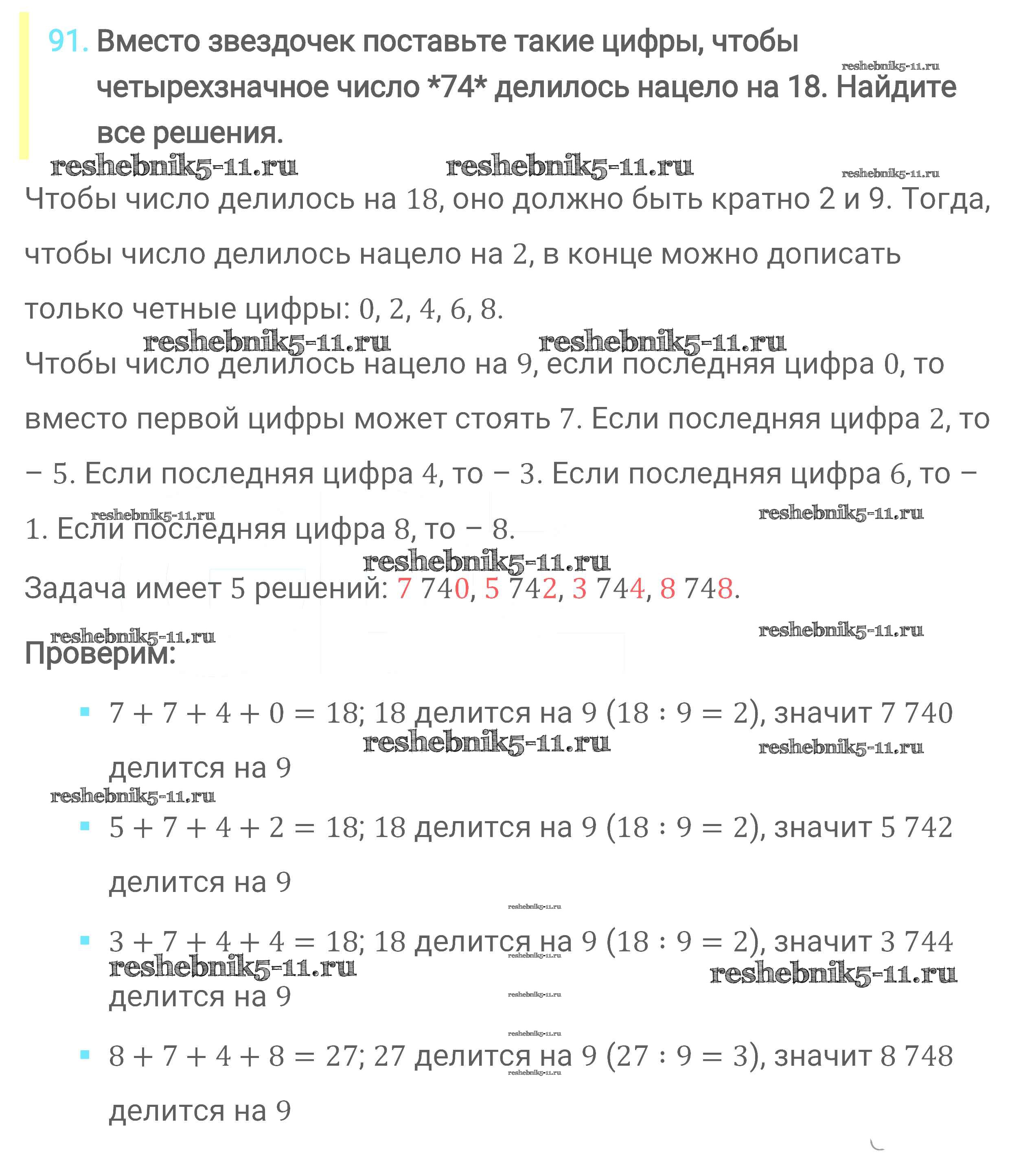 Готовая домашняя работа с ответами по Математике за 6 класс Мерзляк, Полонский, Якир Учебник Алгоритм успеха Вентана-граф 2016 ФГОС - Глава 1. Делимость натуральных чисел (упражнения) 91