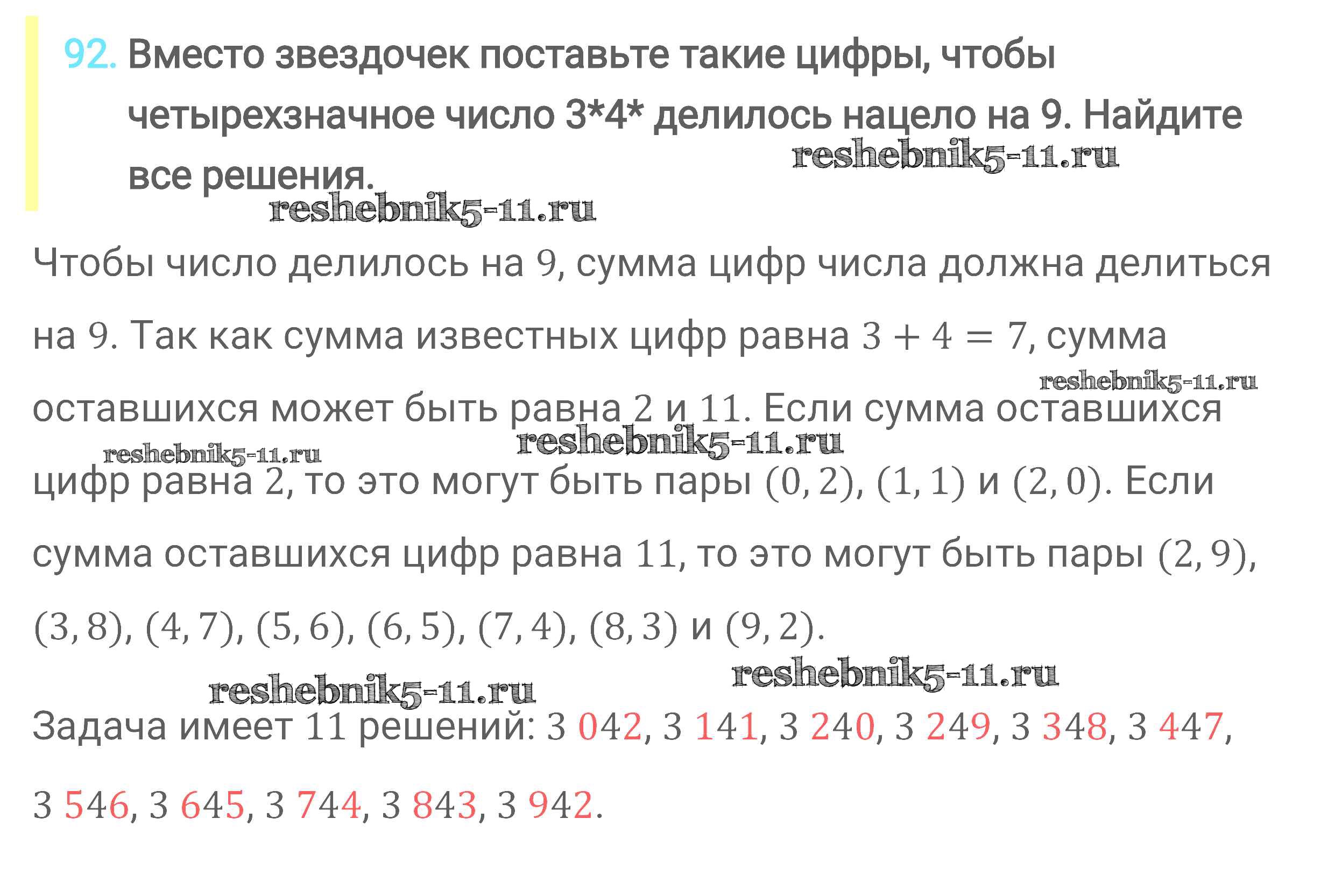 Готовая домашняя работа с ответами по Математике за 6 класс Мерзляк, Полонский, Якир Учебник Алгоритм успеха Вентана-граф 2016 ФГОС - Глава 1. Делимость натуральных чисел (упражнения) 92