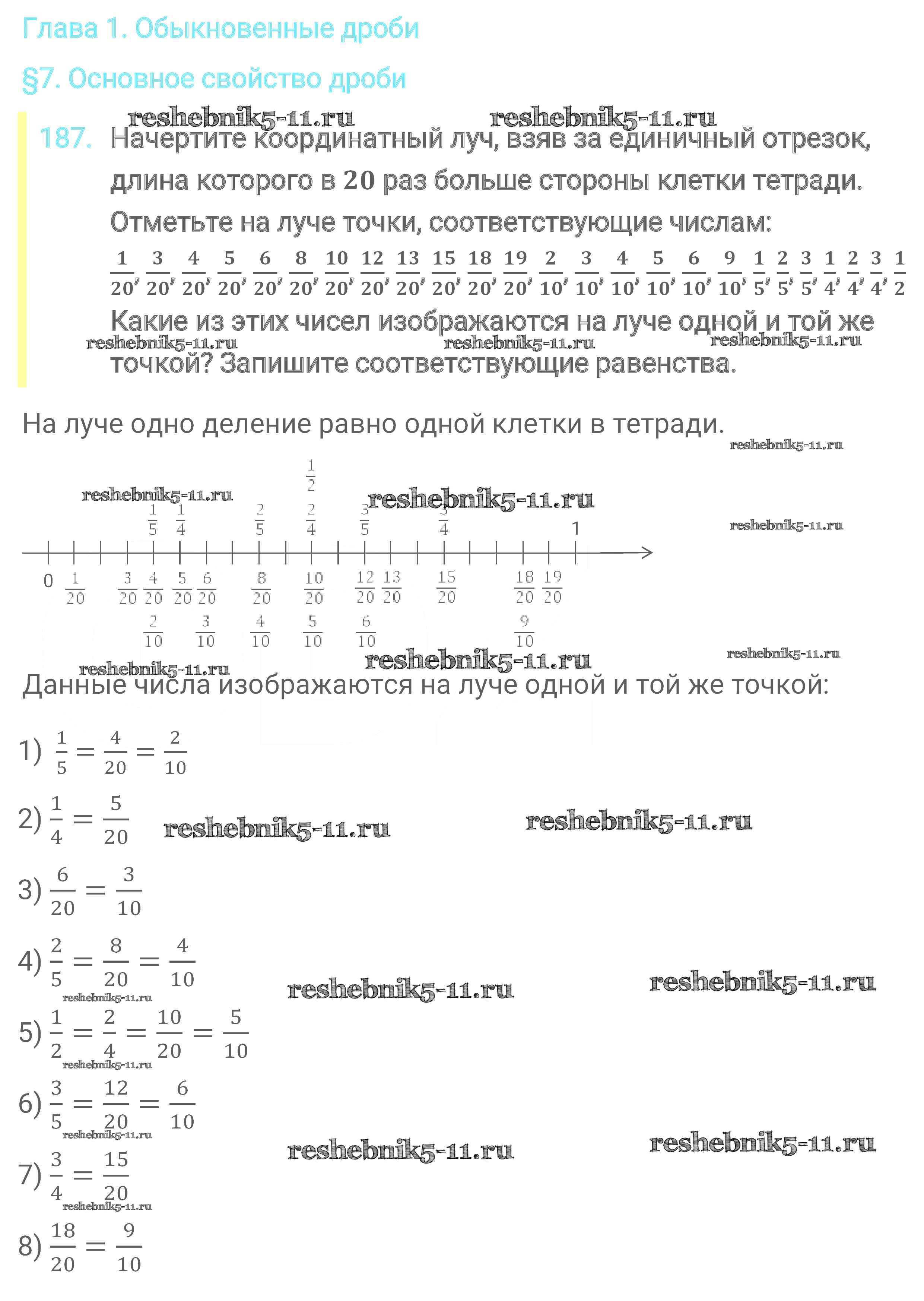 Готовая домашняя работа с ответами по Математике за 6 класс Мерзляк, Полонский, Якир Учебник Алгоритм успеха Вентана-граф 2016 ФГОС - Глава 2. Обыкновенные дроби (упражнения) 187