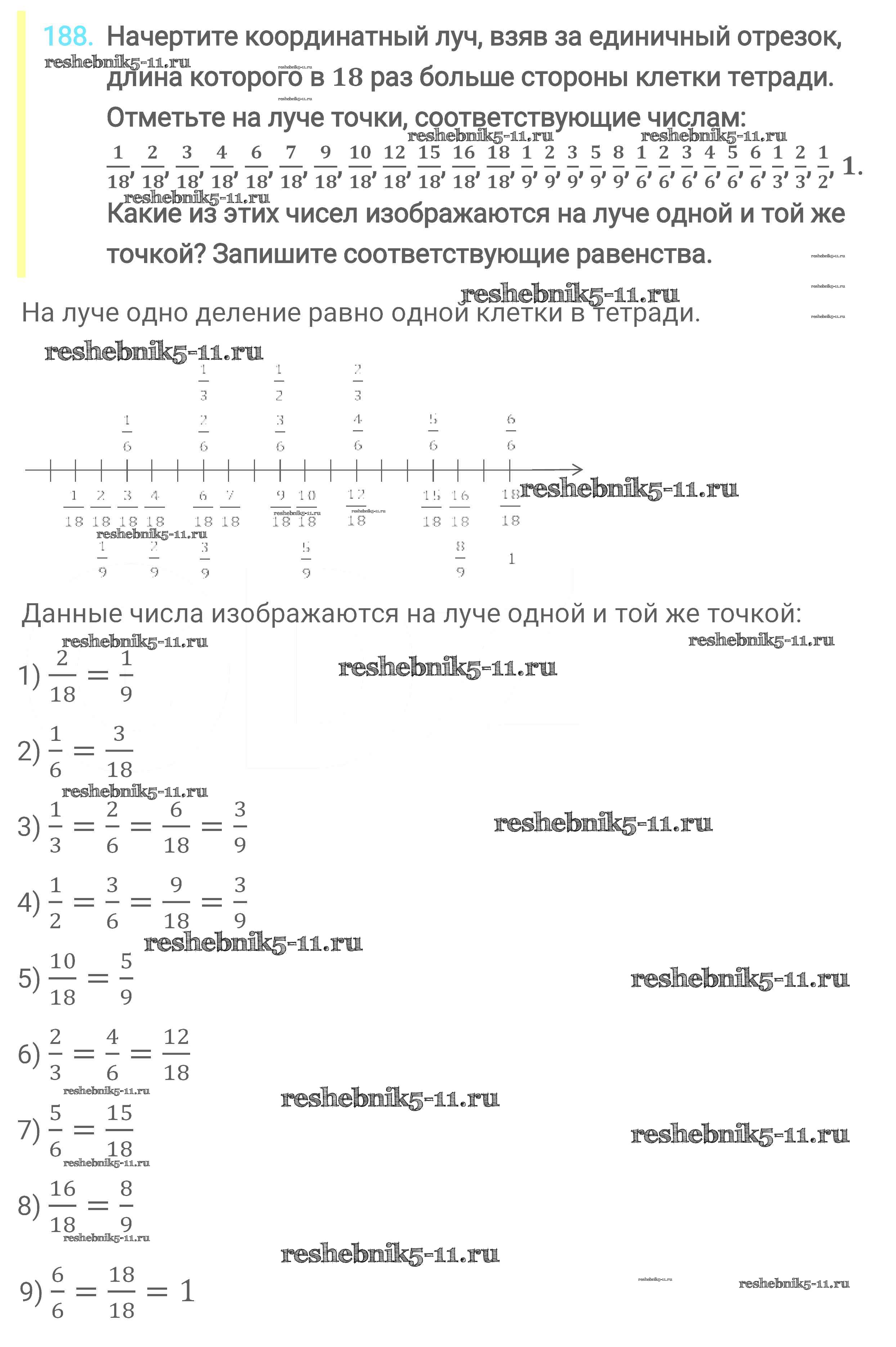 Готовая домашняя работа с ответами по Математике за 6 класс Мерзляк, Полонский, Якир Учебник Алгоритм успеха Вентана-граф 2016 ФГОС - Глава 2. Обыкновенные дроби (упражнения) 188