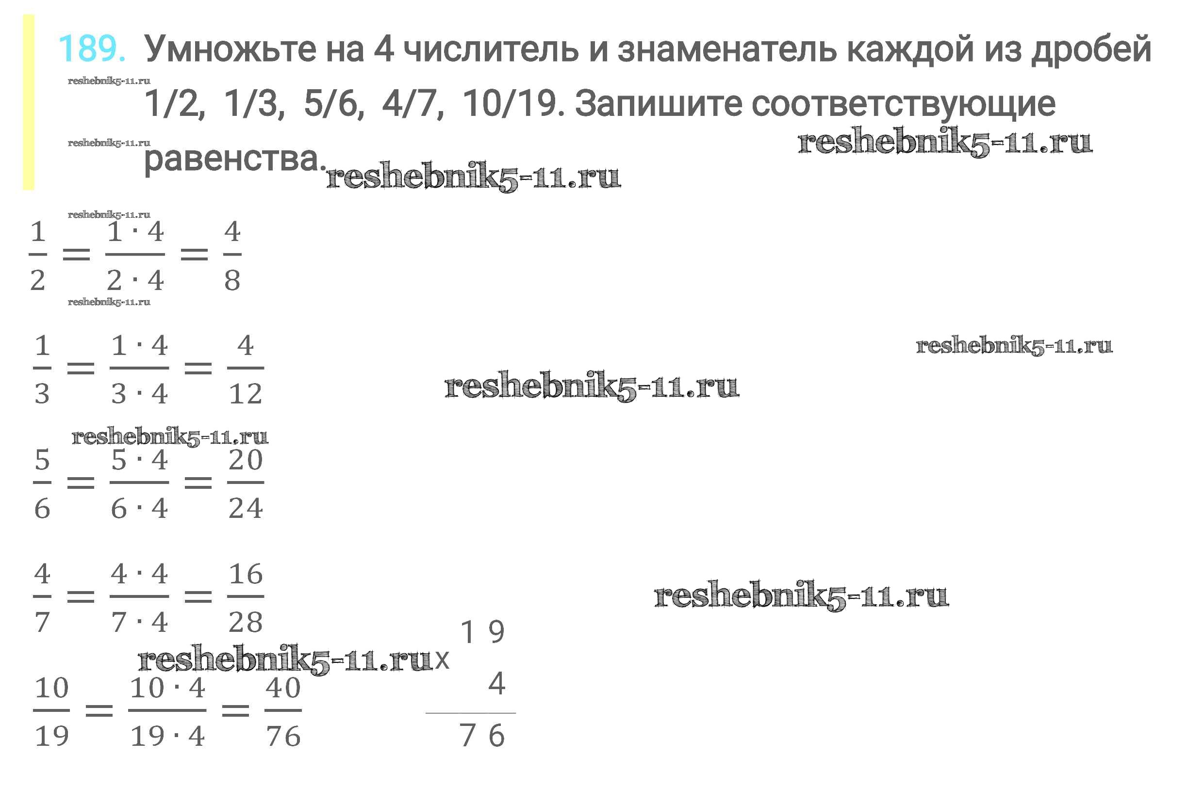 Готовая домашняя работа с ответами по Математике за 6 класс Мерзляк, Полонский, Якир Учебник Алгоритм успеха Вентана-граф 2016 ФГОС - Глава 2. Обыкновенные дроби (упражнения) 189