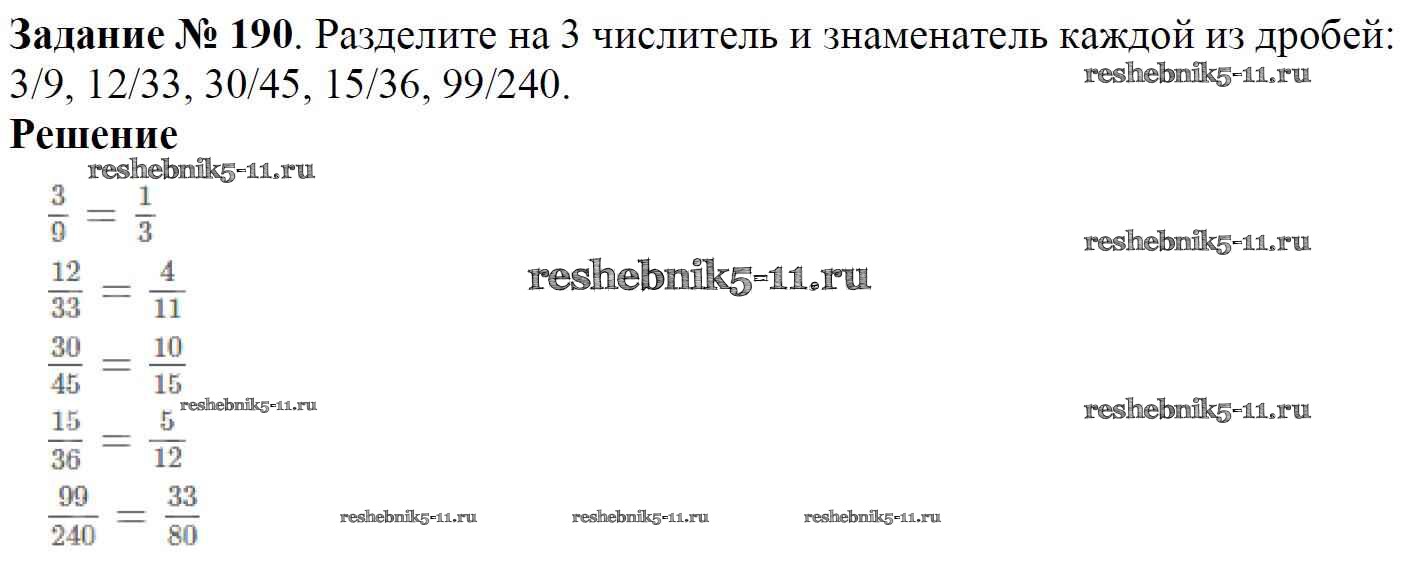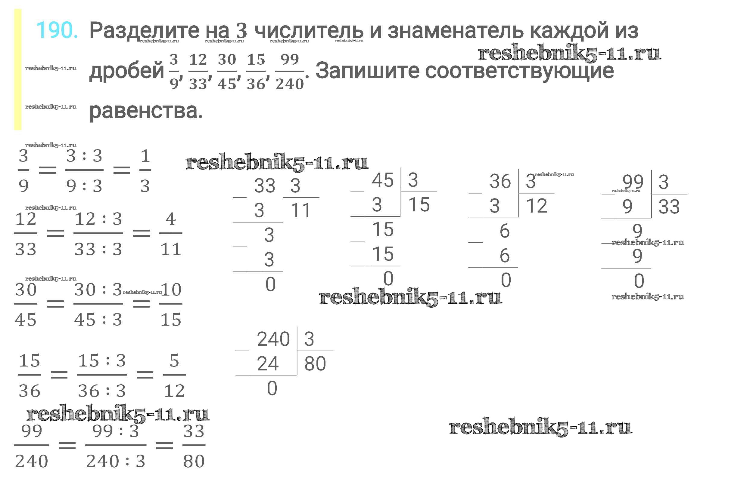 Готовая домашняя работа с ответами по Математике за 6 класс Мерзляк, Полонский, Якир Учебник Алгоритм успеха Вентана-граф 2016 ФГОС - Глава 2. Обыкновенные дроби (упражнения) 190
