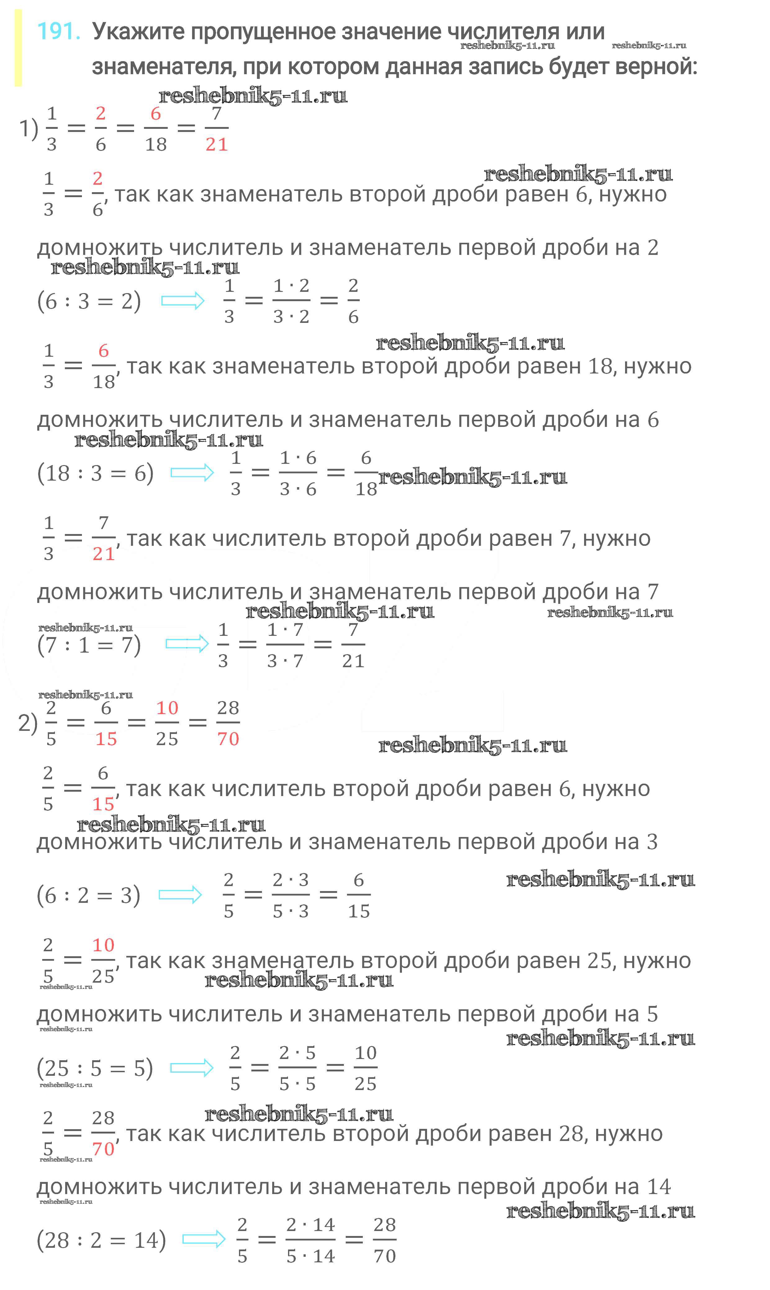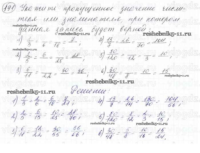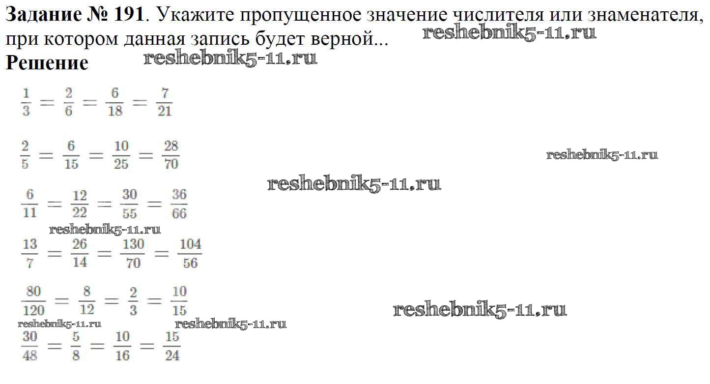 Готовая домашняя работа с ответами по Математике за 6 класс Мерзляк, Полонский, Якир Учебник Алгоритм успеха Вентана-граф 2016 ФГОС - Глава 2. Обыкновенные дроби (упражнения) 191