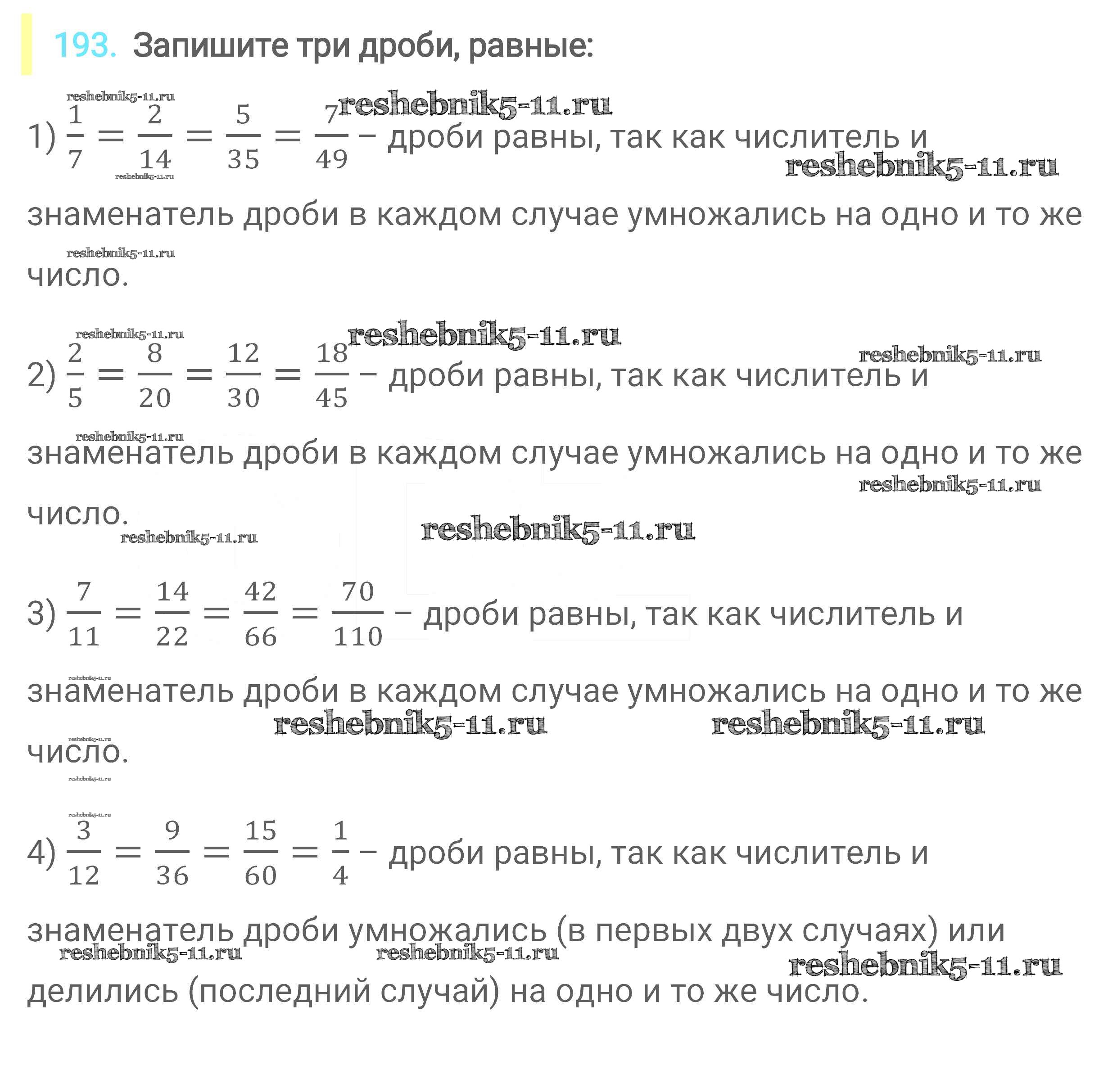 Готовая домашняя работа с ответами по Математике за 6 класс Мерзляк, Полонский, Якир Учебник Алгоритм успеха Вентана-граф 2016 ФГОС - Глава 2. Обыкновенные дроби (упражнения) 193