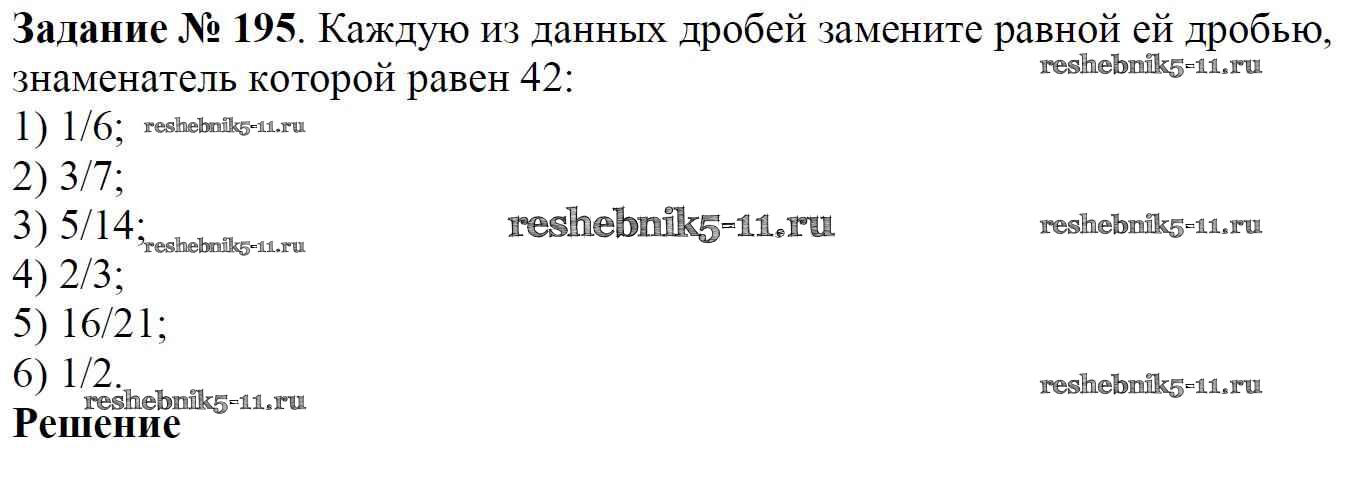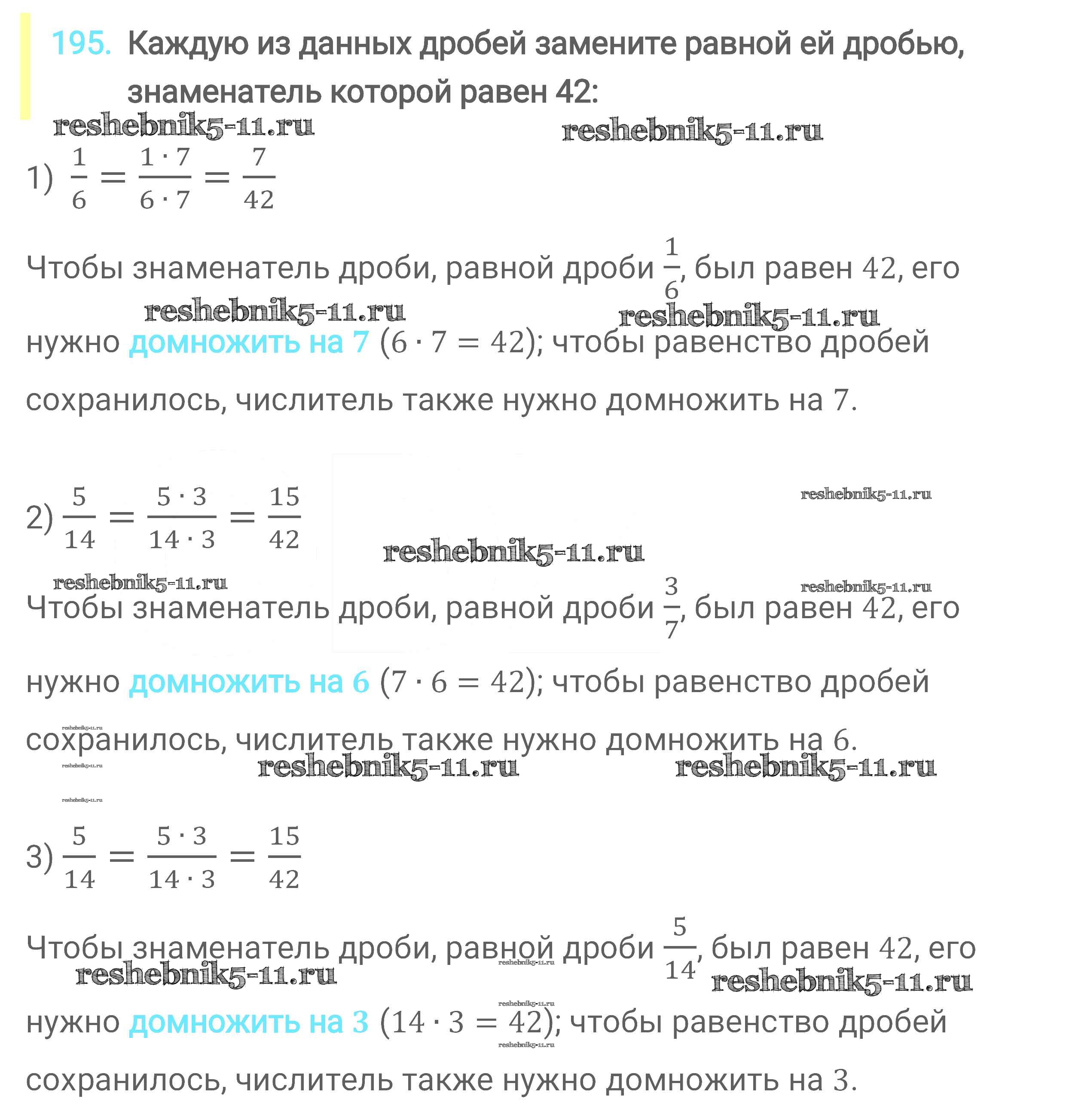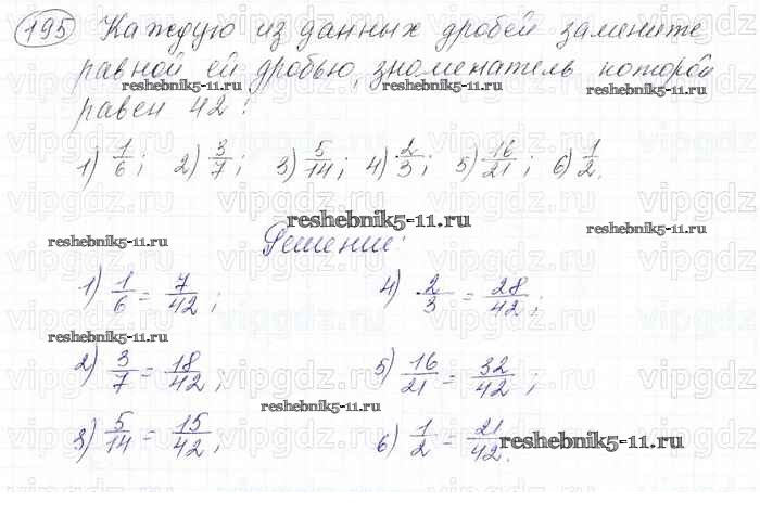 Готовая домашняя работа с ответами по Математике за 6 класс Мерзляк, Полонский, Якир Учебник Алгоритм успеха Вентана-граф 2016 ФГОС - Глава 2. Обыкновенные дроби (упражнения) 195
