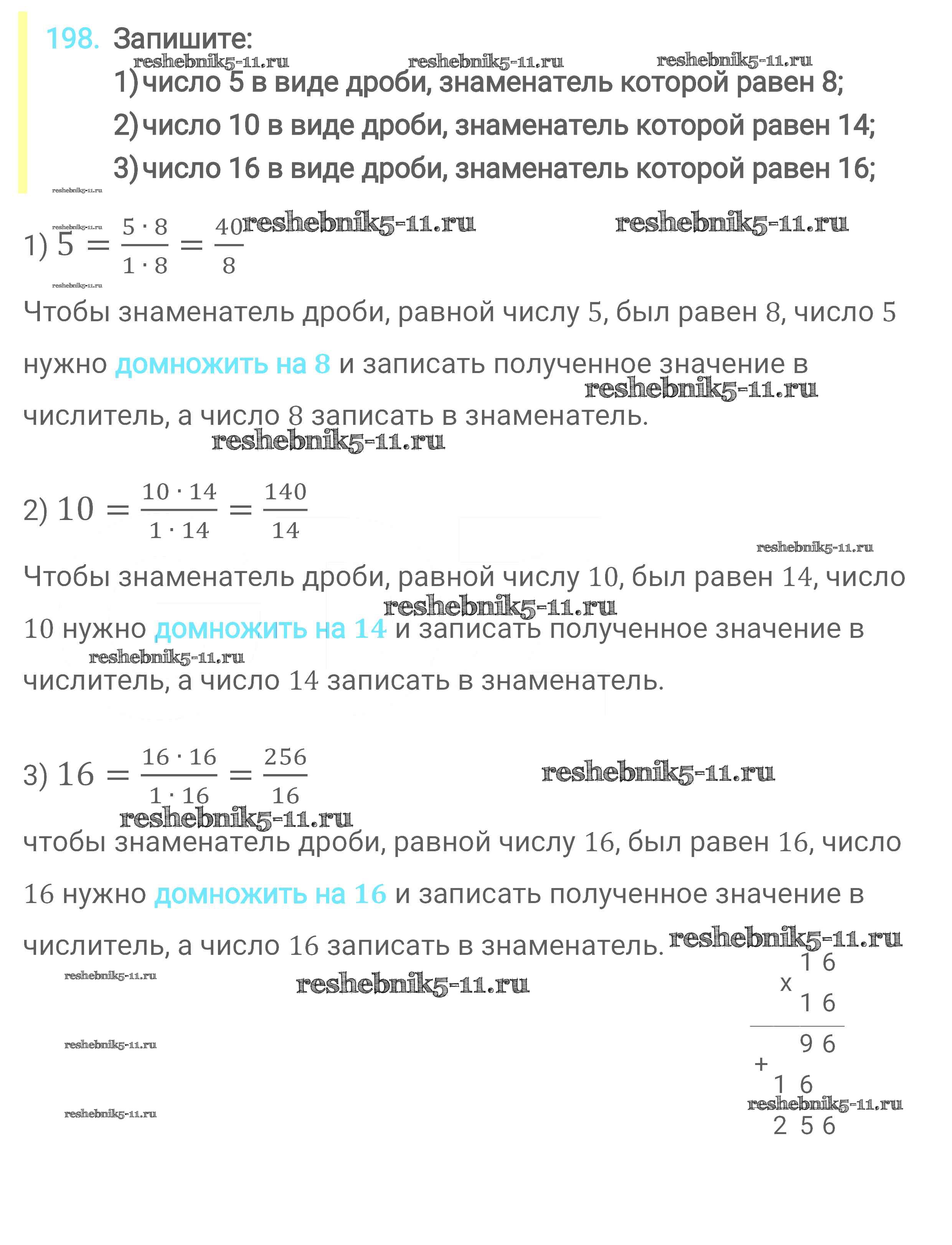Готовая домашняя работа с ответами по Математике за 6 класс Мерзляк, Полонский, Якир Учебник Алгоритм успеха Вентана-граф 2016 ФГОС - Глава 2. Обыкновенные дроби (упражнения) 198