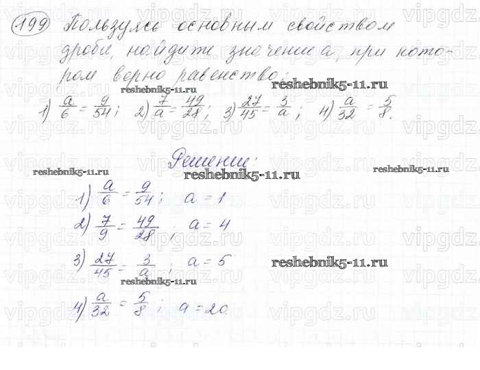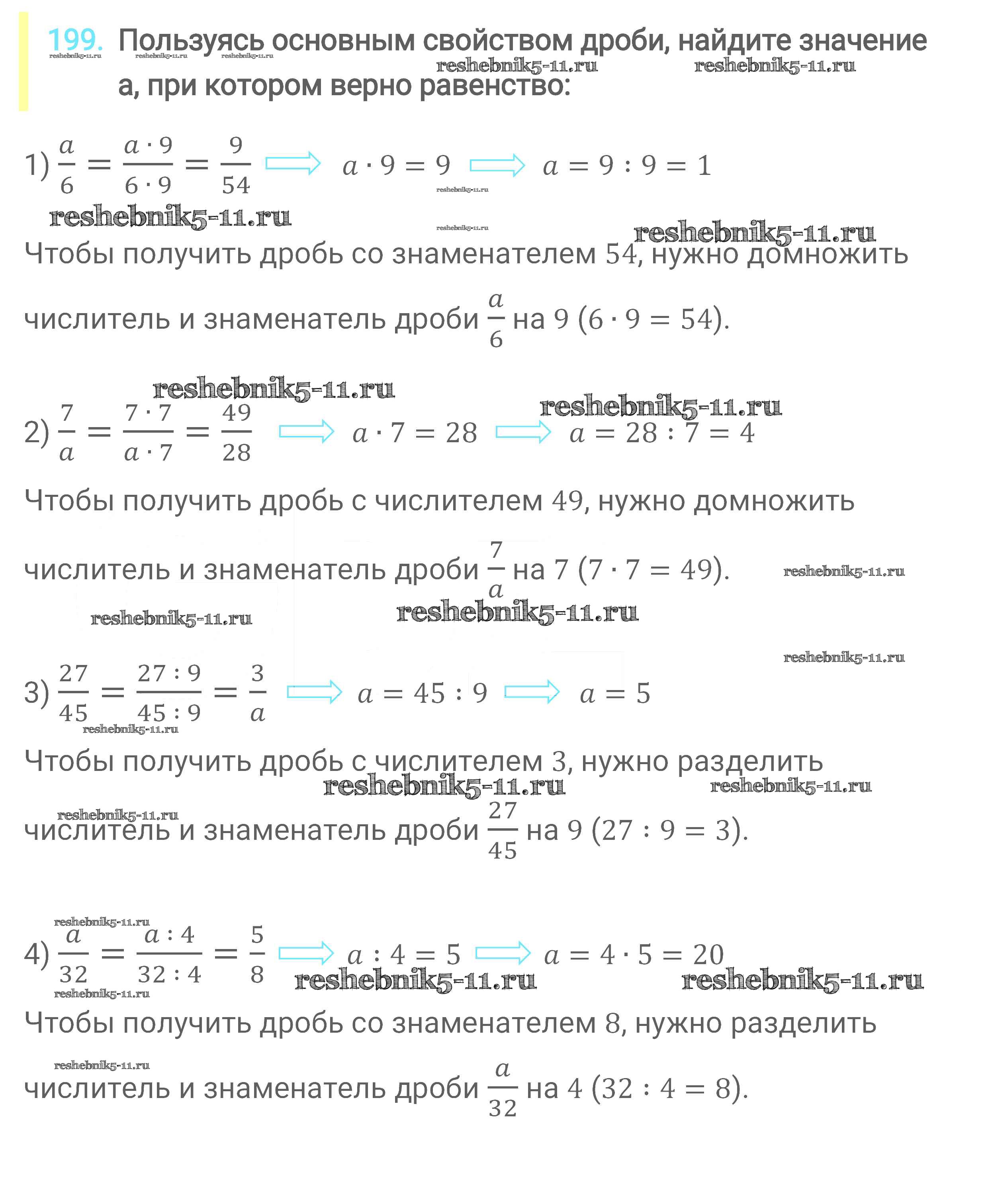 Готовая домашняя работа с ответами по Математике за 6 класс Мерзляк, Полонский, Якир Учебник Алгоритм успеха Вентана-граф 2016 ФГОС - Глава 2. Обыкновенные дроби (упражнения) 199