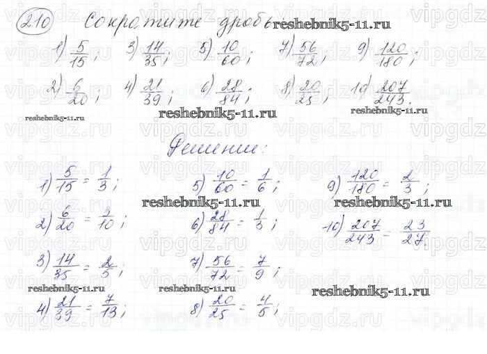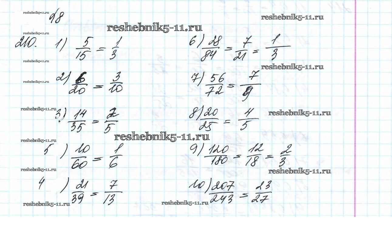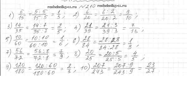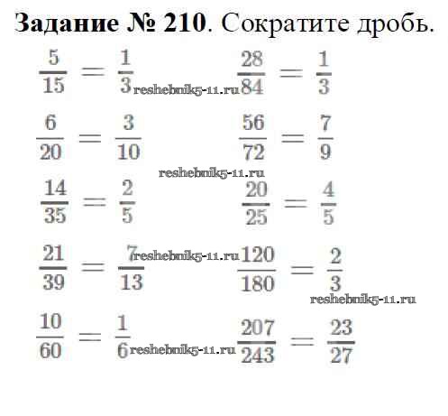 Готовая домашняя работа с ответами по Математике за 6 класс Мерзляк, Полонский, Якир Учебник Алгоритм успеха Вентана-граф 2016 ФГОС - Глава 2. Обыкновенные дроби (упражнения) 210