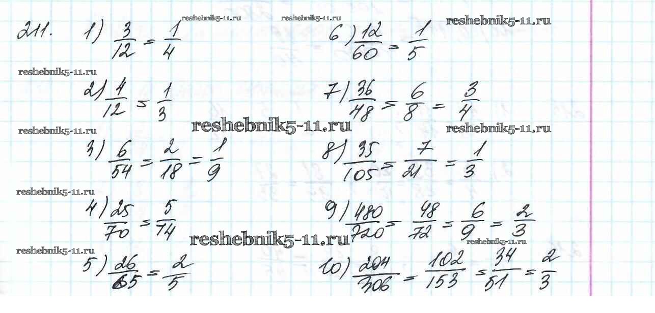 Готовая домашняя работа с ответами по Математике за 6 класс Мерзляк, Полонский, Якир Учебник Алгоритм успеха Вентана-граф 2016 ФГОС - Глава 2. Обыкновенные дроби (упражнения) 211
