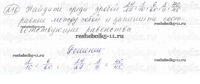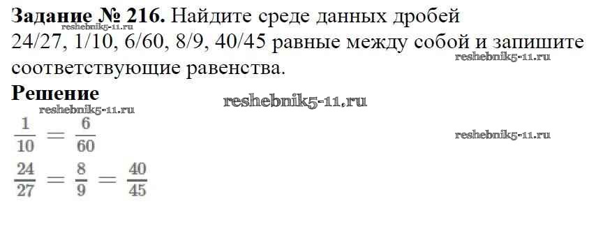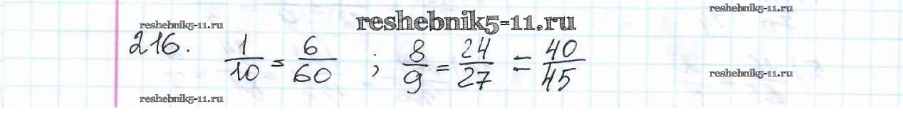 Готовая домашняя работа с ответами по Математике за 6 класс Мерзляк, Полонский, Якир Учебник Алгоритм успеха Вентана-граф 2016 ФГОС - Глава 2. Обыкновенные дроби (упражнения) 216