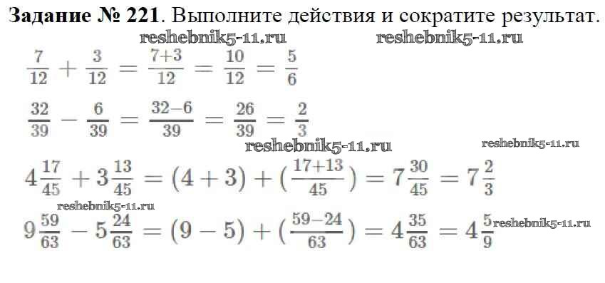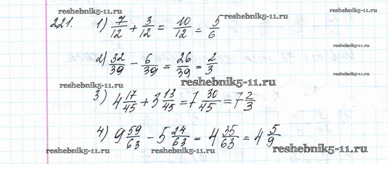 Готовая домашняя работа с ответами по Математике за 6 класс Мерзляк, Полонский, Якир Учебник Алгоритм успеха Вентана-граф 2016 ФГОС - Глава 2. Обыкновенные дроби (упражнения) 221