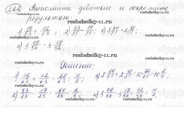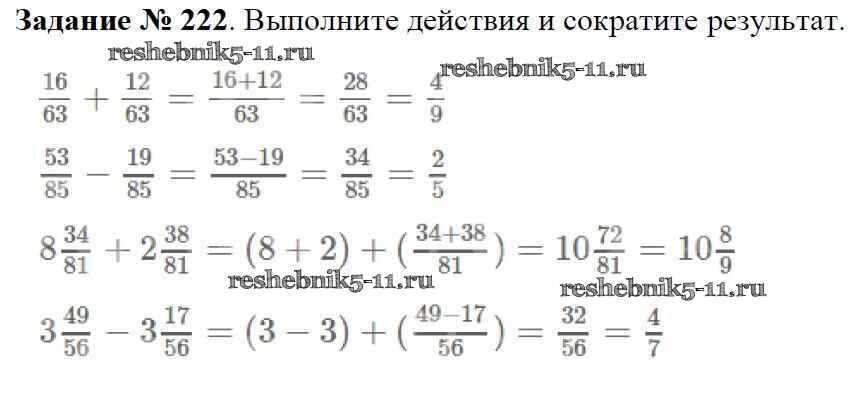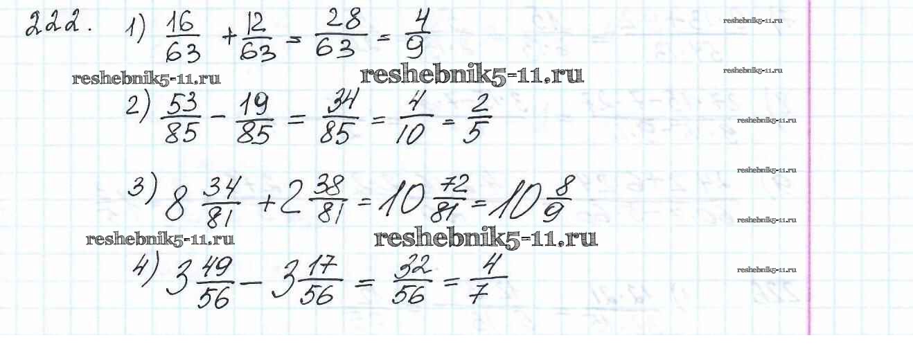 Готовая домашняя работа с ответами по Математике за 6 класс Мерзляк, Полонский, Якир Учебник Алгоритм успеха Вентана-граф 2016 ФГОС - Глава 2. Обыкновенные дроби (упражнения) 222
