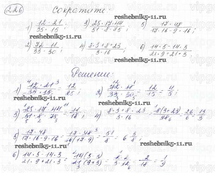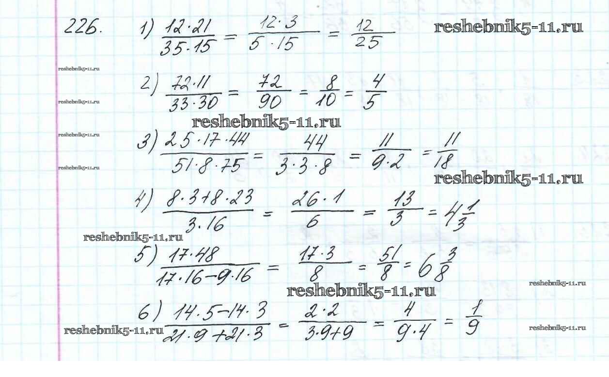 Готовая домашняя работа с ответами по Математике за 6 класс Мерзляк, Полонский, Якир Учебник Алгоритм успеха Вентана-граф 2016 ФГОС - Глава 2. Обыкновенные дроби (упражнения) 226