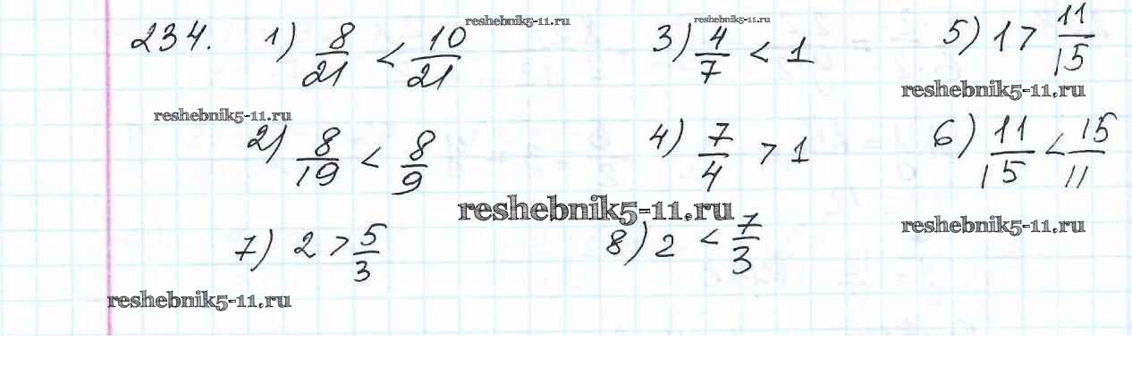 Готовая домашняя работа с ответами по Математике за 6 класс Мерзляк, Полонский, Якир Учебник Алгоритм успеха Вентана-граф 2016 ФГОС - Глава 2. Обыкновенные дроби (упражнения) 234