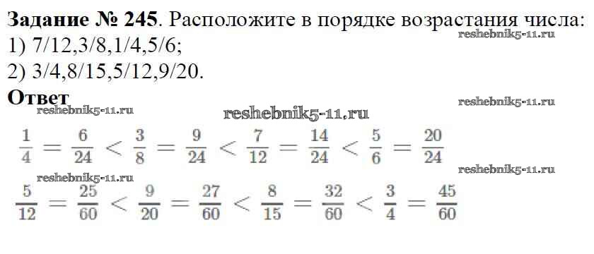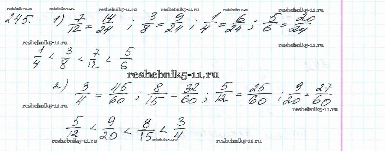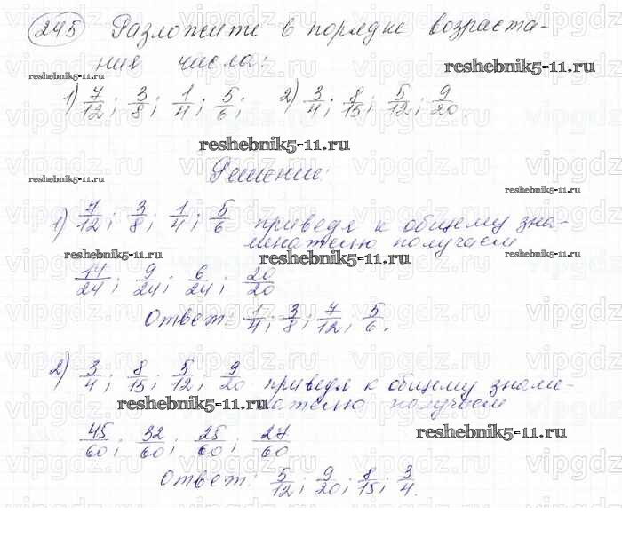 Готовая домашняя работа с ответами по Математике за 6 класс Мерзляк, Полонский, Якир Учебник Алгоритм успеха Вентана-граф 2016 ФГОС - Глава 2. Обыкновенные дроби (упражнения) 245