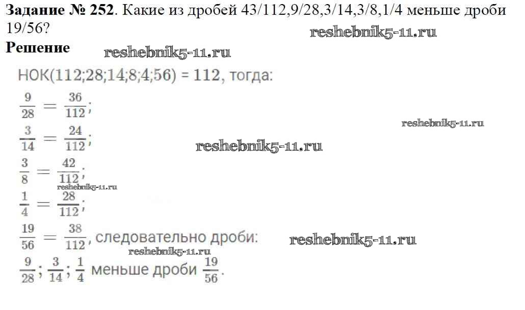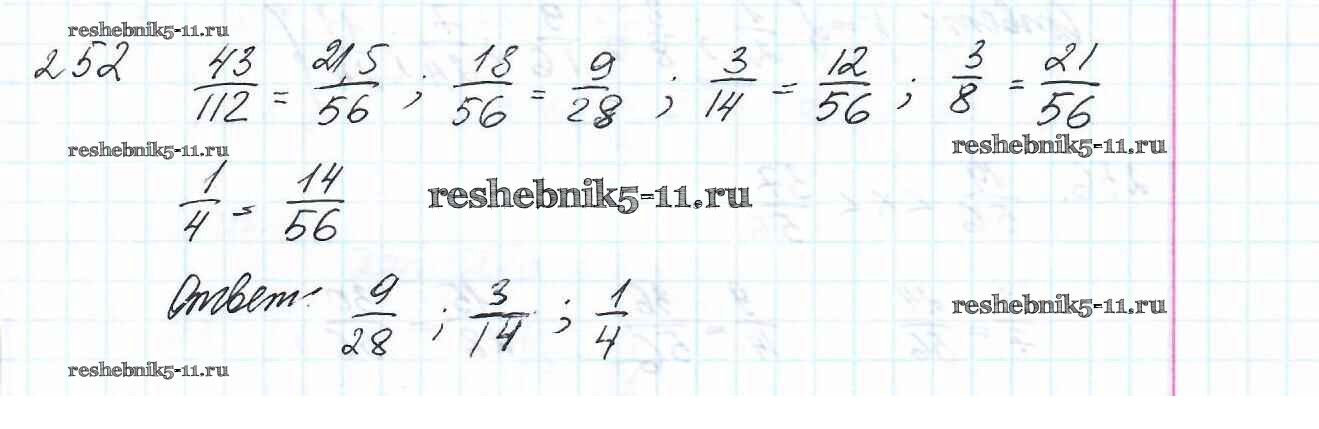 Готовая домашняя работа с ответами по Математике за 6 класс Мерзляк, Полонский, Якир Учебник Алгоритм успеха Вентана-граф 2016 ФГОС - Глава 2. Обыкновенные дроби (упражнения) 252