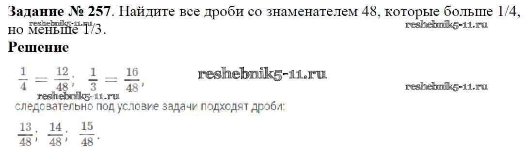 Готовая домашняя работа с ответами по Математике за 6 класс Мерзляк, Полонский, Якир Учебник Алгоритм успеха Вентана-граф 2016 ФГОС - Глава 2. Обыкновенные дроби (упражнения) 257
