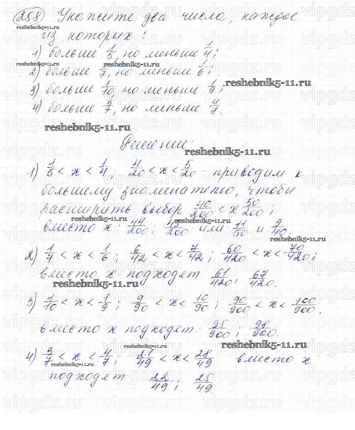 Готовая домашняя работа с ответами по Математике за 6 класс Мерзляк, Полонский, Якир Учебник Алгоритм успеха Вентана-граф 2016 ФГОС - Глава 2. Обыкновенные дроби (упражнения) 258