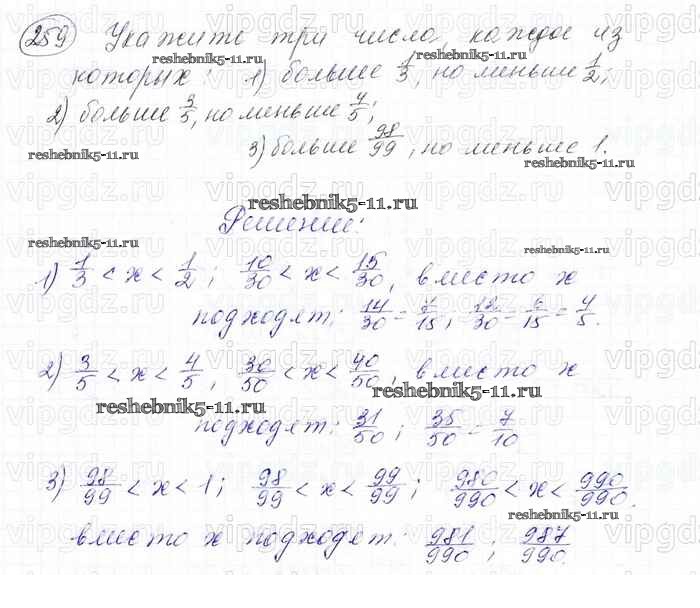 Готовая домашняя работа с ответами по Математике за 6 класс Мерзляк, Полонский, Якир Учебник Алгоритм успеха Вентана-граф 2016 ФГОС - Глава 2. Обыкновенные дроби (упражнения) 259