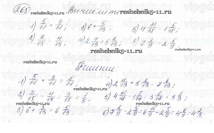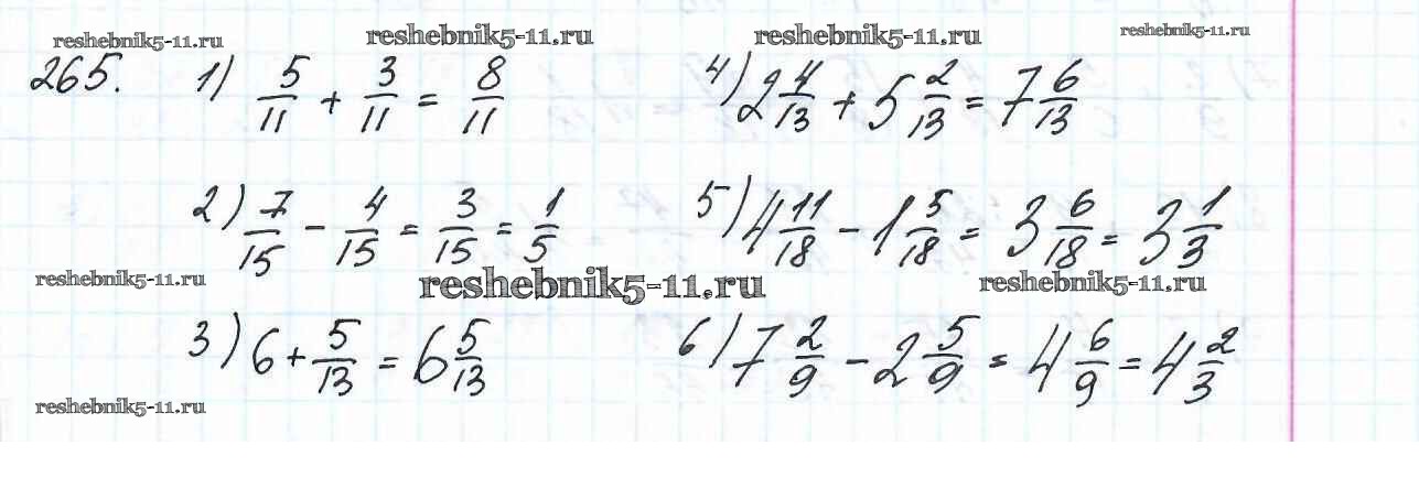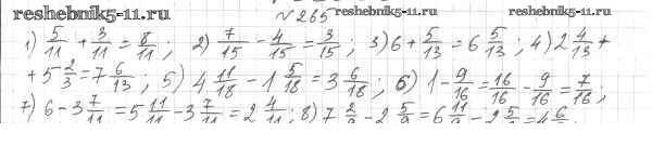 Готовая домашняя работа с ответами по Математике за 6 класс Мерзляк, Полонский, Якир Учебник Алгоритм успеха Вентана-граф 2016 ФГОС - Глава 2. Обыкновенные дроби (упражнения) 265