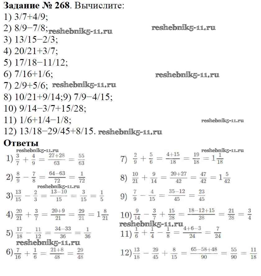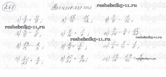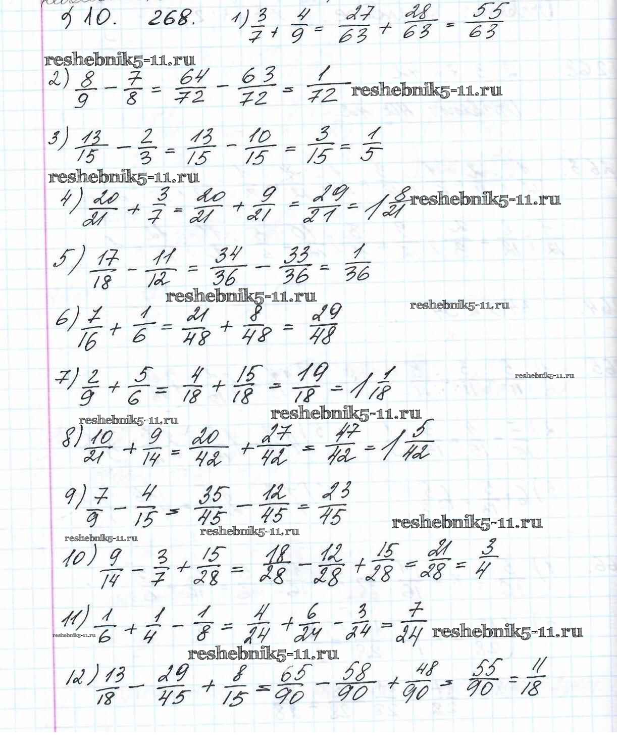 Готовая домашняя работа с ответами по Математике за 6 класс Мерзляк, Полонский, Якир Учебник Алгоритм успеха Вентана-граф 2016 ФГОС - Глава 2. Обыкновенные дроби (упражнения) 268