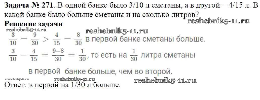 Готовая домашняя работа с ответами по Математике за 6 класс Мерзляк, Полонский, Якир Учебник Алгоритм успеха Вентана-граф 2016 ФГОС - Глава 2. Обыкновенные дроби (упражнения) 271
