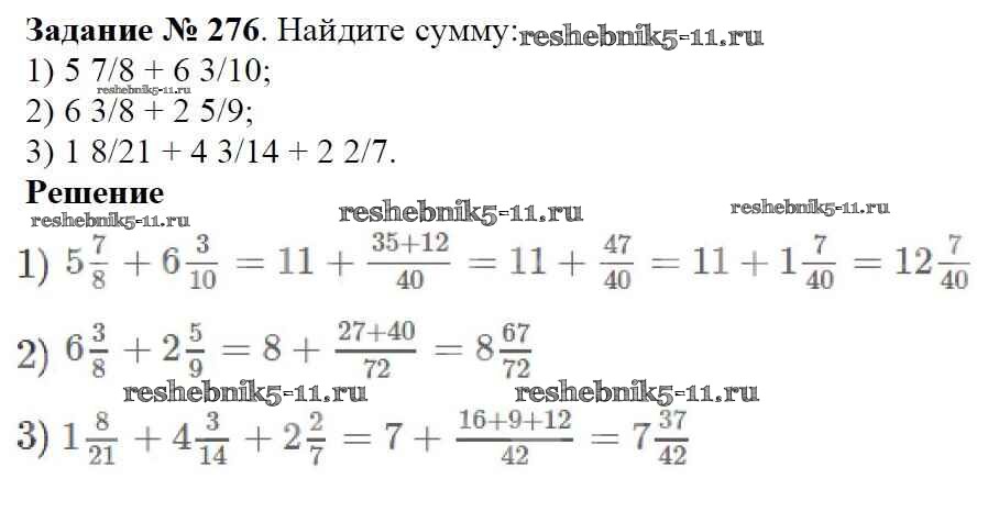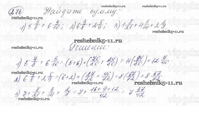 Готовая домашняя работа с ответами по Математике за 6 класс Мерзляк, Полонский, Якир Учебник Алгоритм успеха Вентана-граф 2016 ФГОС - Глава 2. Обыкновенные дроби (упражнения) 276