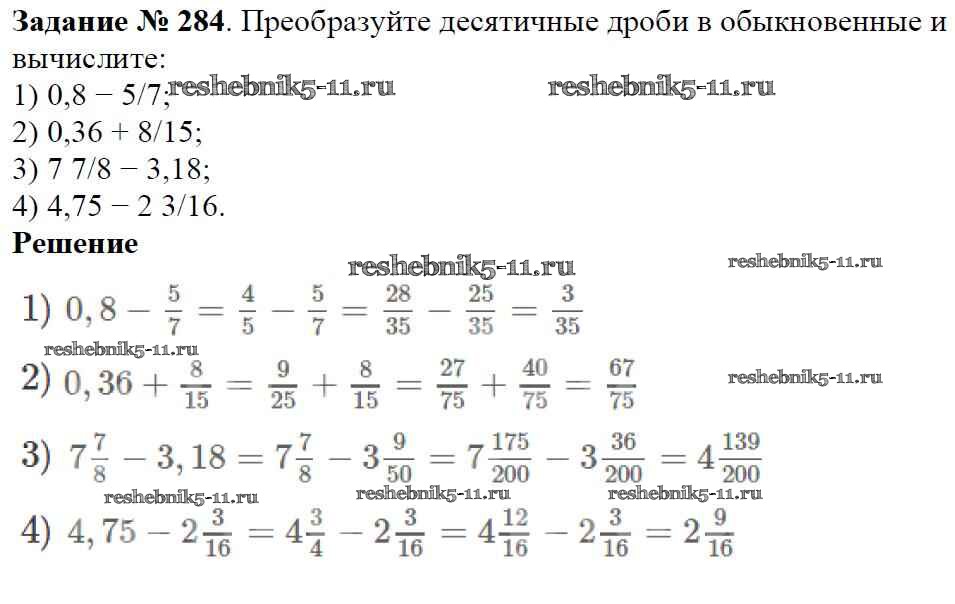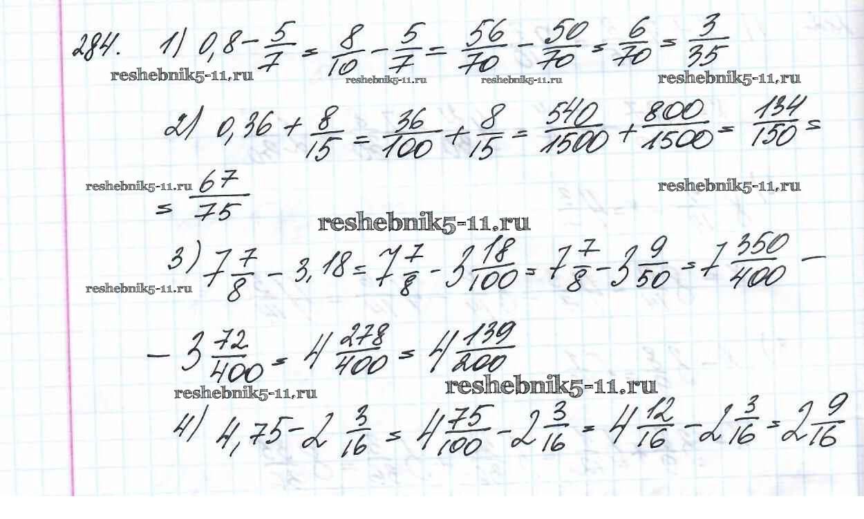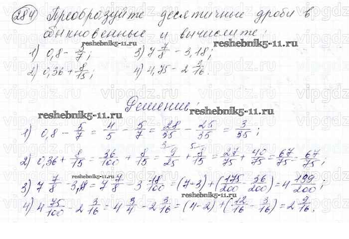 Готовая домашняя работа с ответами по Математике за 6 класс Мерзляк, Полонский, Якир Учебник Алгоритм успеха Вентана-граф 2016 ФГОС - Глава 2. Обыкновенные дроби (упражнения) 284