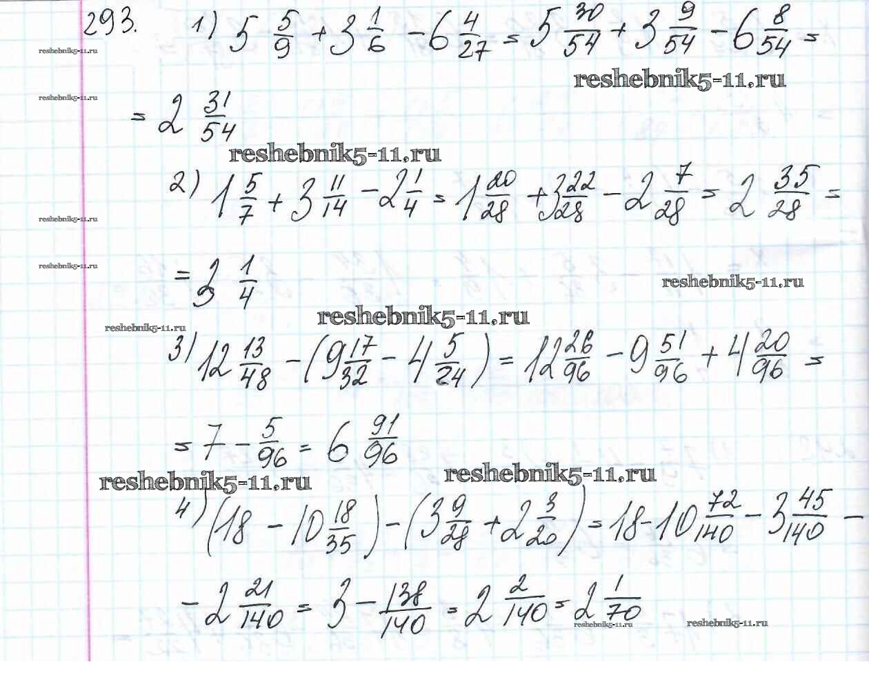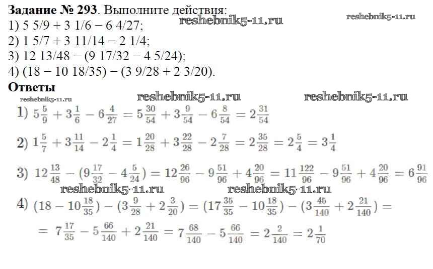 Готовая домашняя работа с ответами по Математике за 6 класс Мерзляк, Полонский, Якир Учебник Алгоритм успеха Вентана-граф 2016 ФГОС - Глава 2. Обыкновенные дроби (упражнения) 293