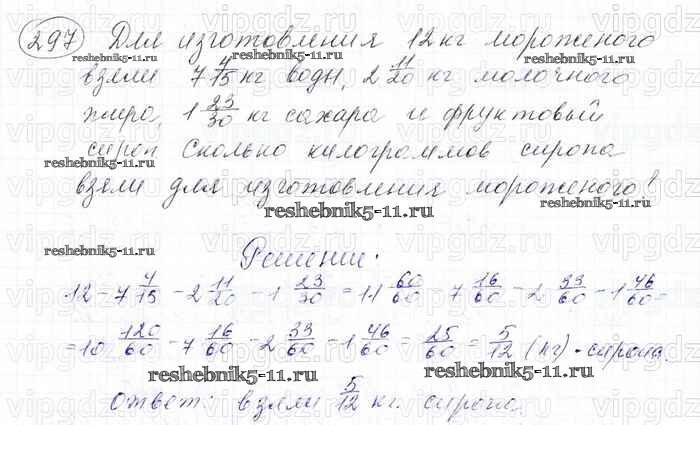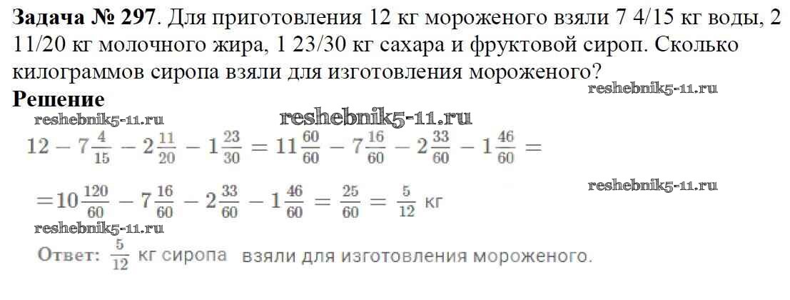 Готовая домашняя работа с ответами по Математике за 6 класс Мерзляк, Полонский, Якир Учебник Алгоритм успеха Вентана-граф 2016 ФГОС - Глава 2. Обыкновенные дроби (упражнения) 297