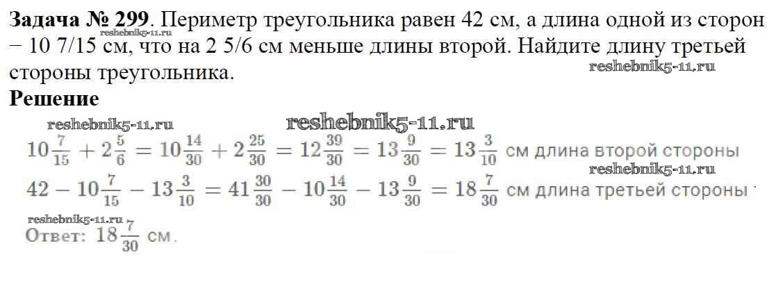 Готовая домашняя работа с ответами по Математике за 6 класс Мерзляк, Полонский, Якир Учебник Алгоритм успеха Вентана-граф 2016 ФГОС - Глава 2. Обыкновенные дроби (упражнения) 299