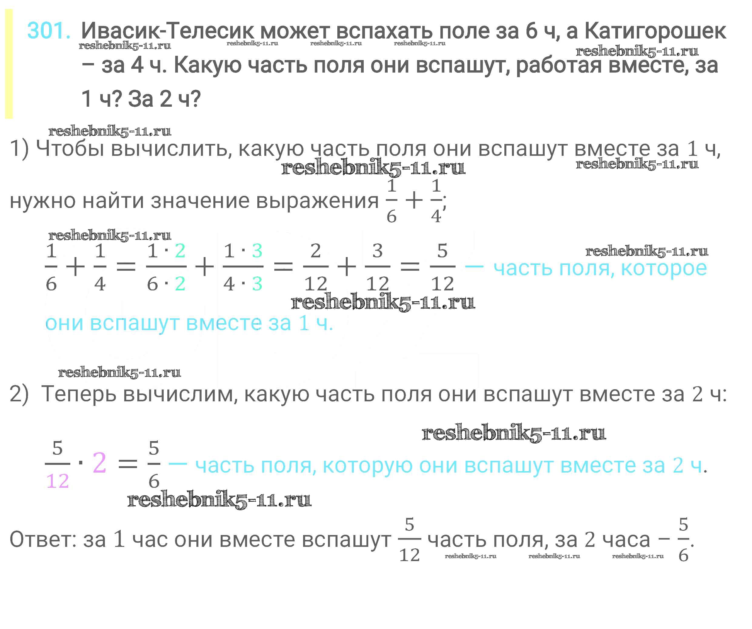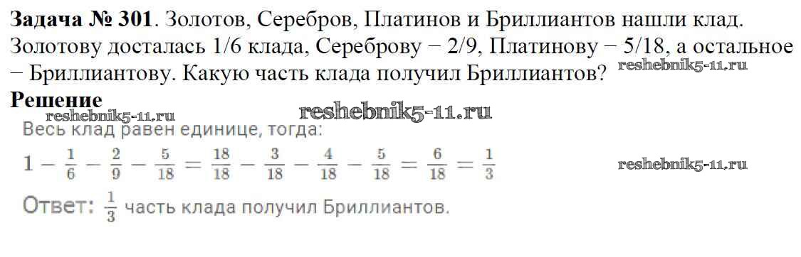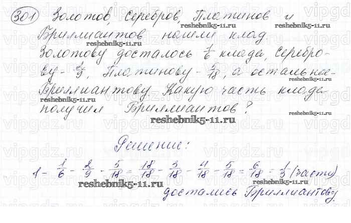 Готовая домашняя работа с ответами по Математике за 6 класс Мерзляк, Полонский, Якир Учебник Алгоритм успеха Вентана-граф 2016 ФГОС - Глава 2. Обыкновенные дроби (упражнения) 301