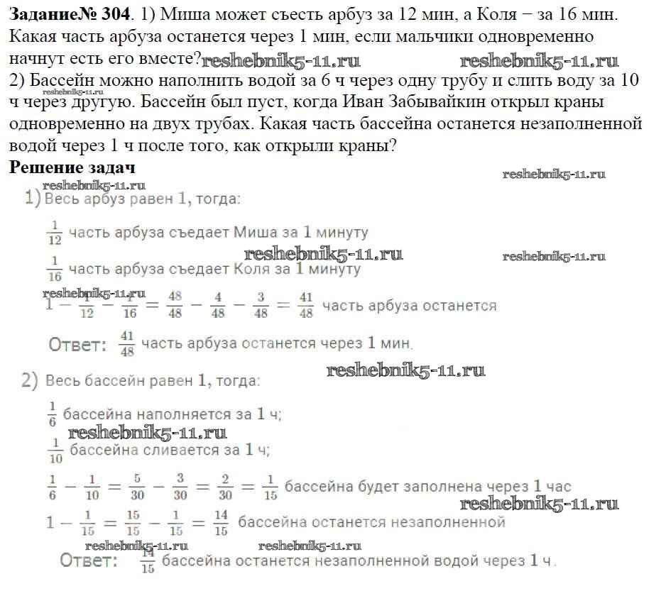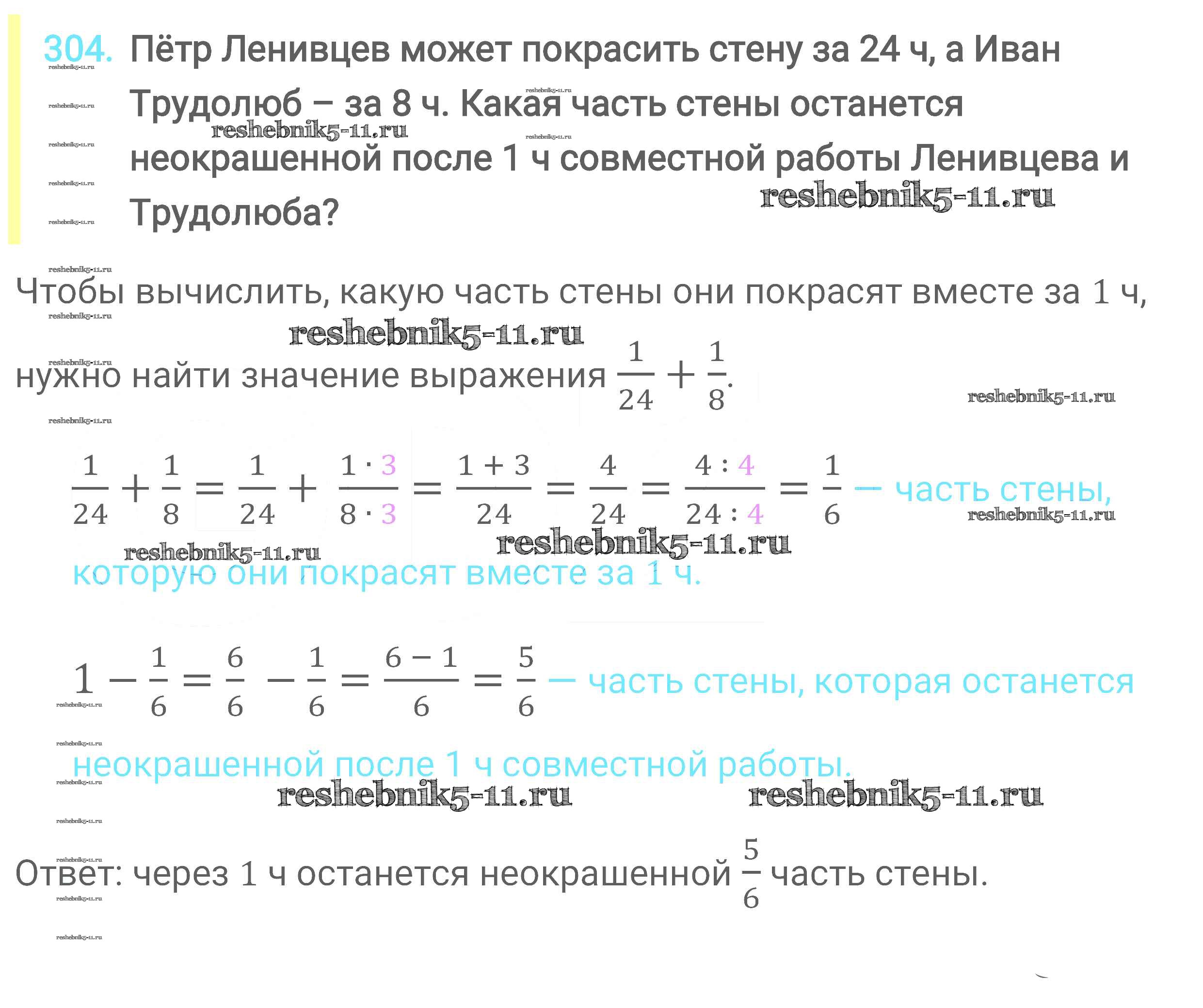 Готовая домашняя работа с ответами по Математике за 6 класс Мерзляк, Полонский, Якир Учебник Алгоритм успеха Вентана-граф 2016 ФГОС - Глава 2. Обыкновенные дроби (упражнения) 304