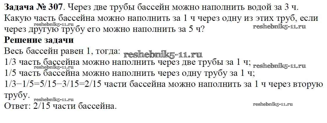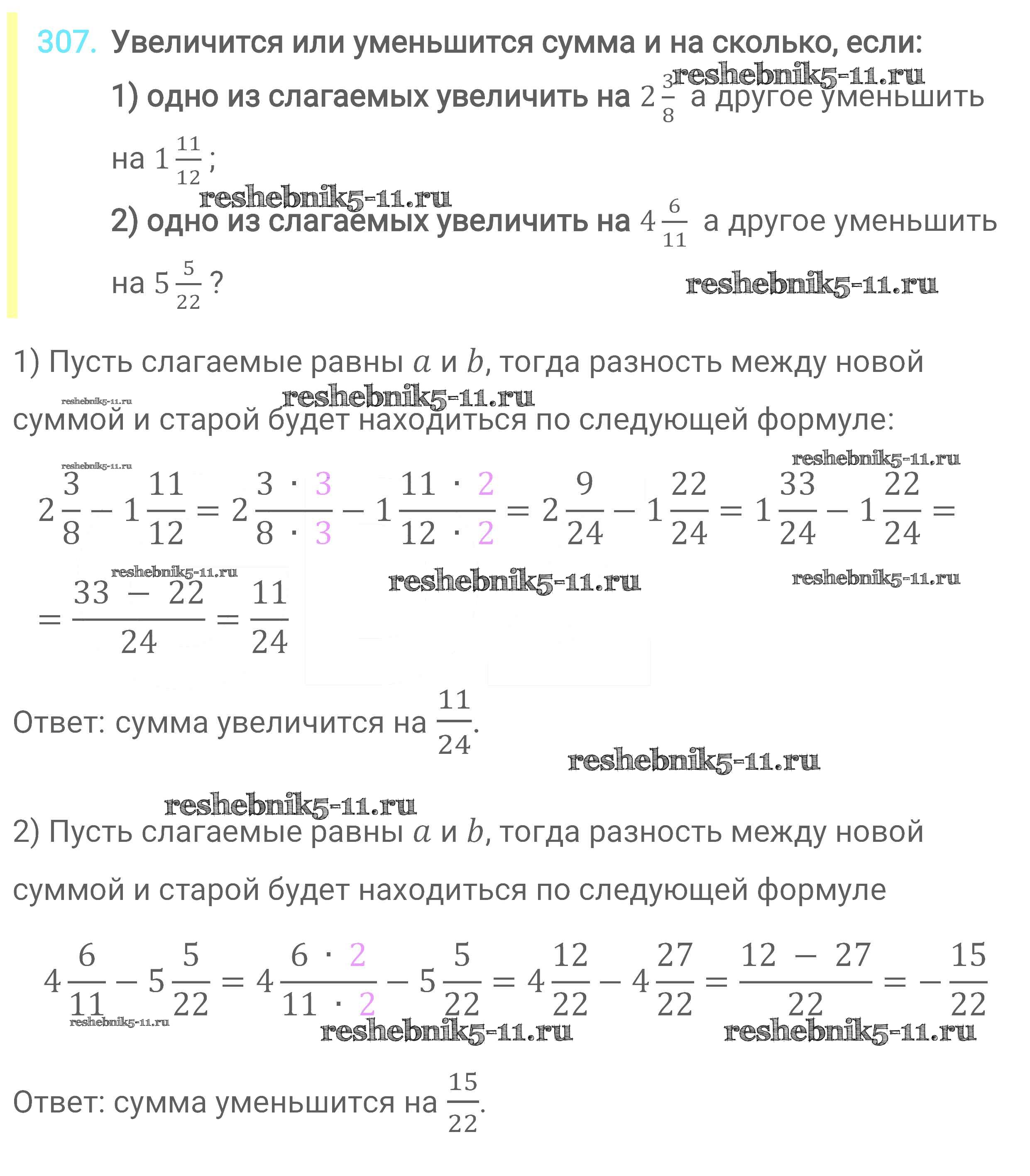Готовая домашняя работа с ответами по Математике за 6 класс Мерзляк, Полонский, Якир Учебник Алгоритм успеха Вентана-граф 2016 ФГОС - Глава 2. Обыкновенные дроби (упражнения) 307