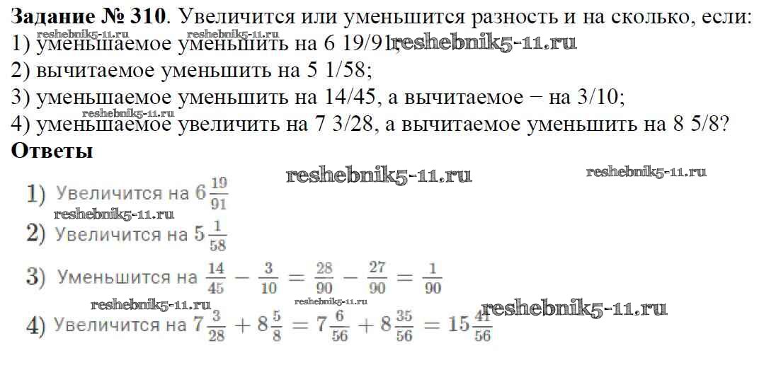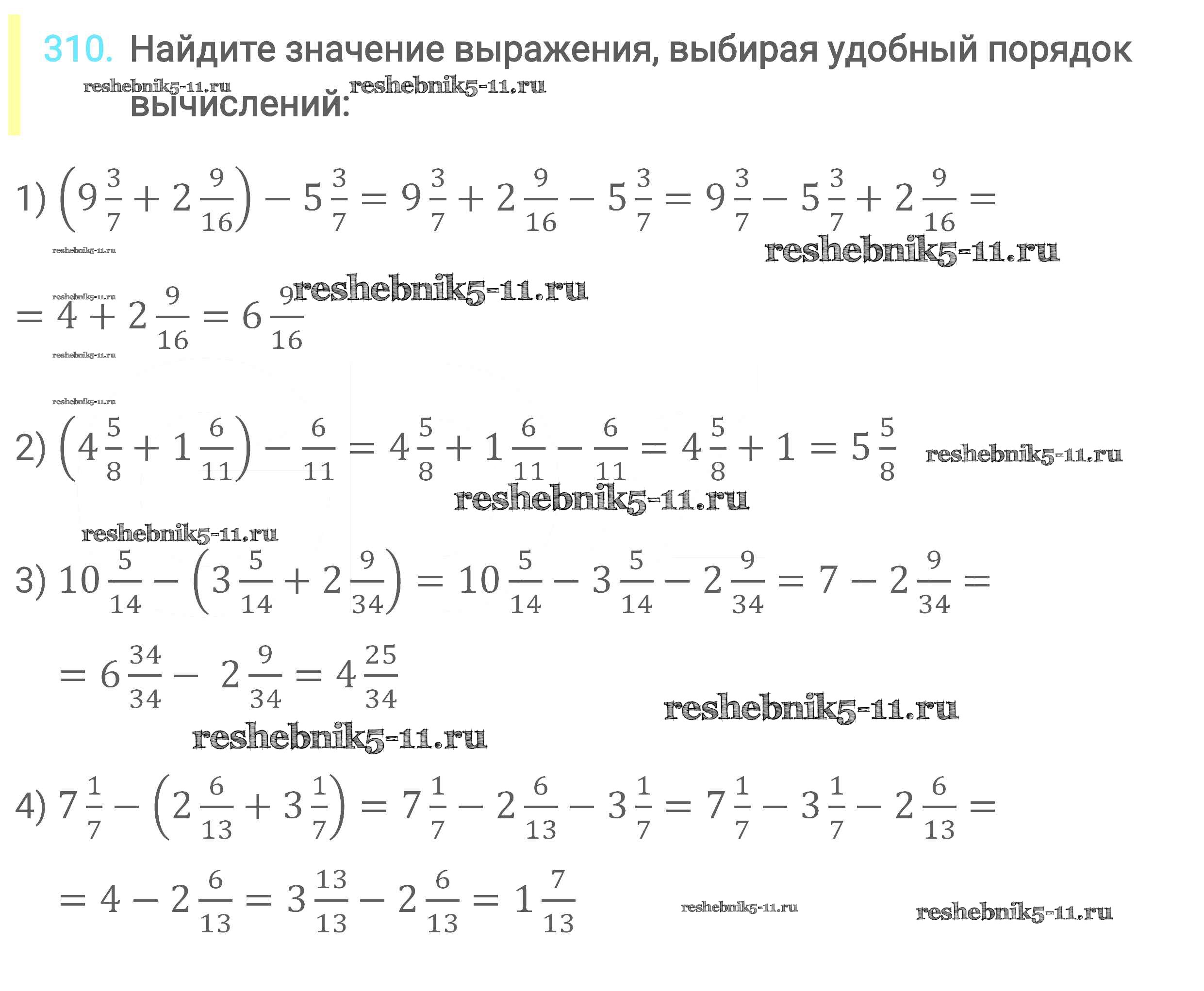 Готовая домашняя работа с ответами по Математике за 6 класс Мерзляк, Полонский, Якир Учебник Алгоритм успеха Вентана-граф 2016 ФГОС - Глава 2. Обыкновенные дроби (упражнения) 310