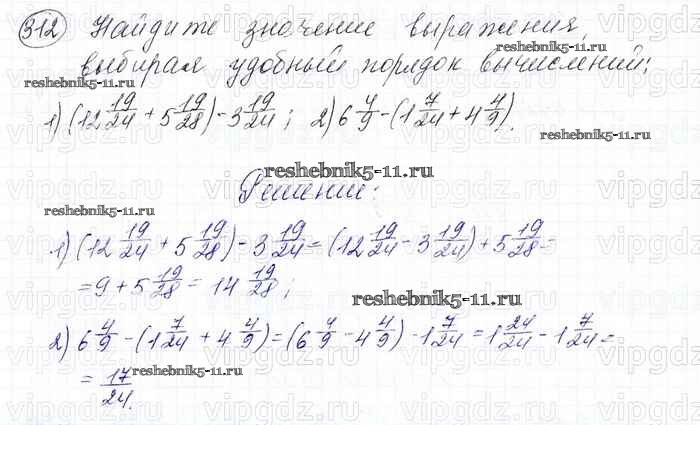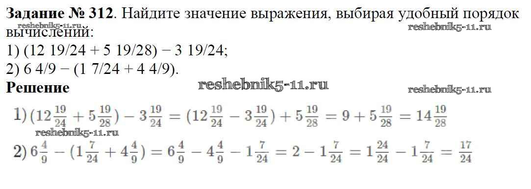 Готовая домашняя работа с ответами по Математике за 6 класс Мерзляк, Полонский, Якир Учебник Алгоритм успеха Вентана-граф 2016 ФГОС - Глава 2. Обыкновенные дроби (упражнения) 312