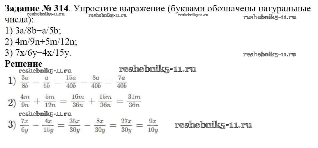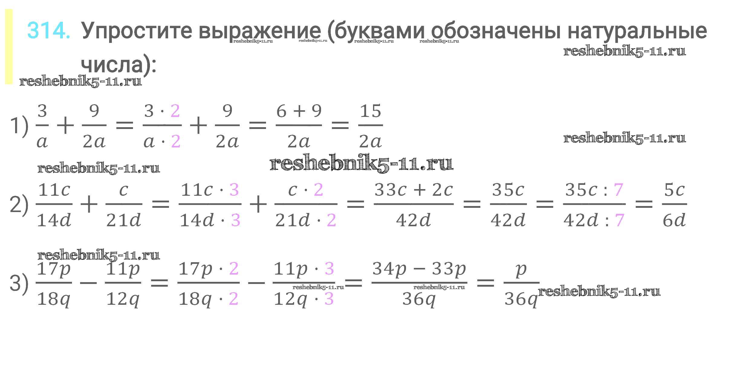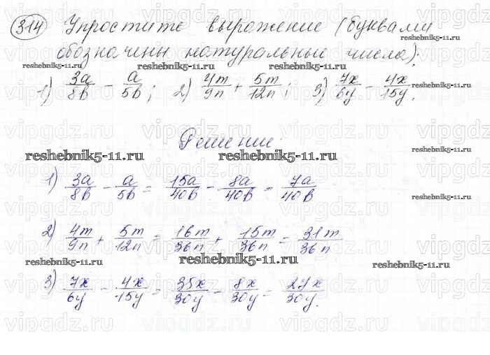 Готовая домашняя работа с ответами по Математике за 6 класс Мерзляк, Полонский, Якир Учебник Алгоритм успеха Вентана-граф 2016 ФГОС - Глава 2. Обыкновенные дроби (упражнения) 314