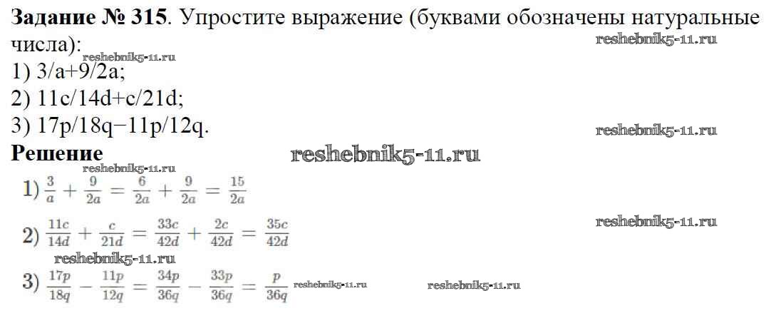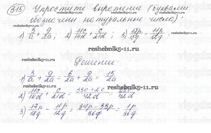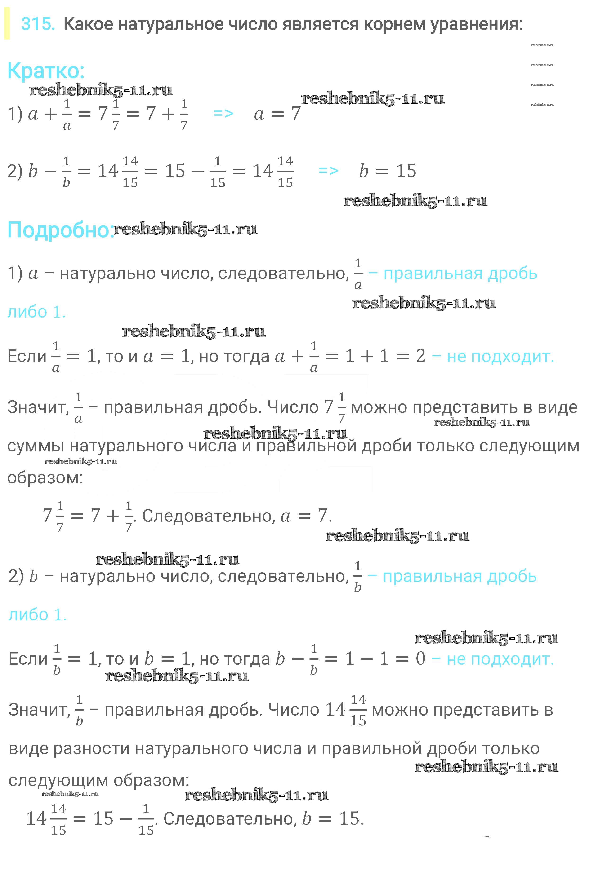 Готовая домашняя работа с ответами по Математике за 6 класс Мерзляк, Полонский, Якир Учебник Алгоритм успеха Вентана-граф 2016 ФГОС - Глава 2. Обыкновенные дроби (упражнения) 315