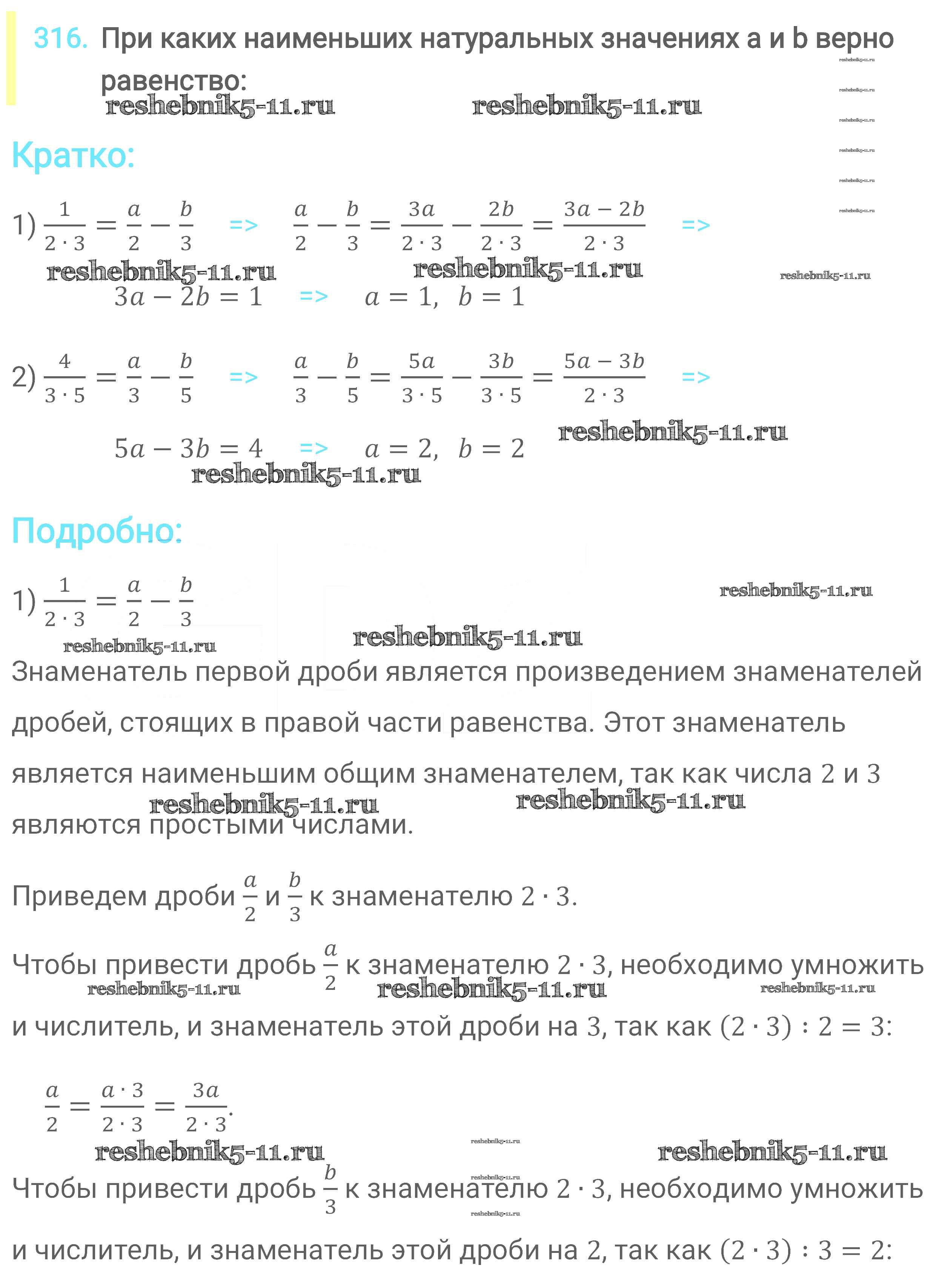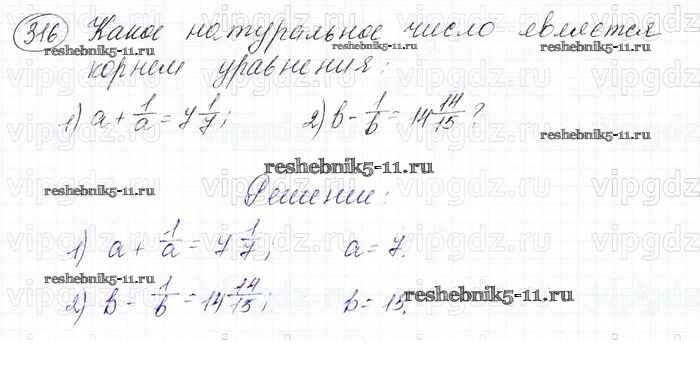 Готовая домашняя работа с ответами по Математике за 6 класс Мерзляк, Полонский, Якир Учебник Алгоритм успеха Вентана-граф 2016 ФГОС - Глава 2. Обыкновенные дроби (упражнения) 316