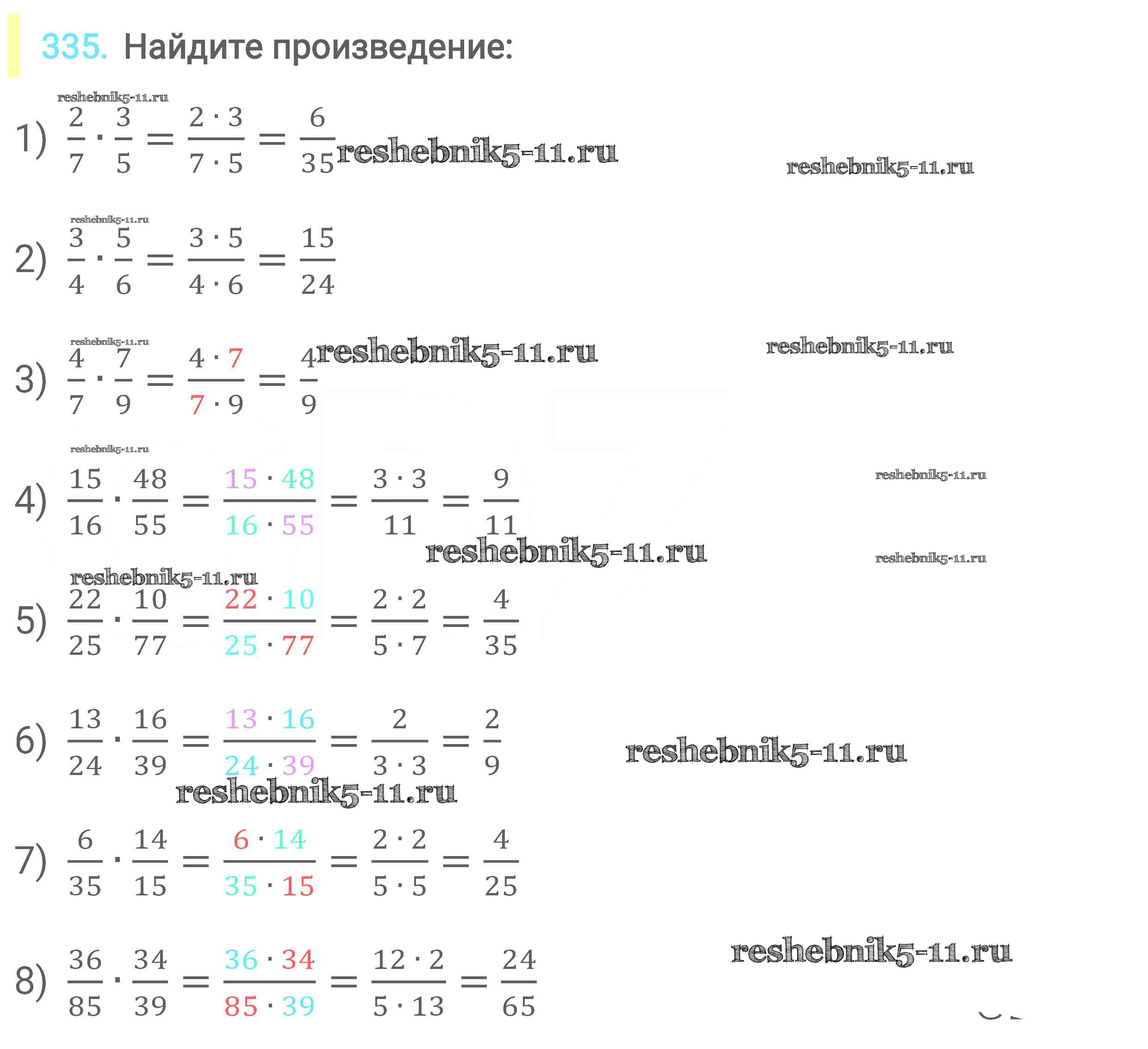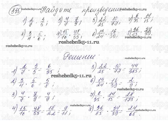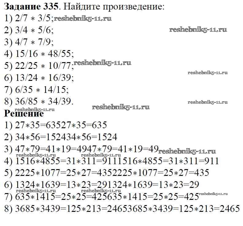 Готовая домашняя работа с ответами по Математике за 6 класс Мерзляк, Полонский, Якир Учебник Алгоритм успеха Вентана-граф 2016 ФГОС - Глава 2. Обыкновенные дроби (упражнения) 335