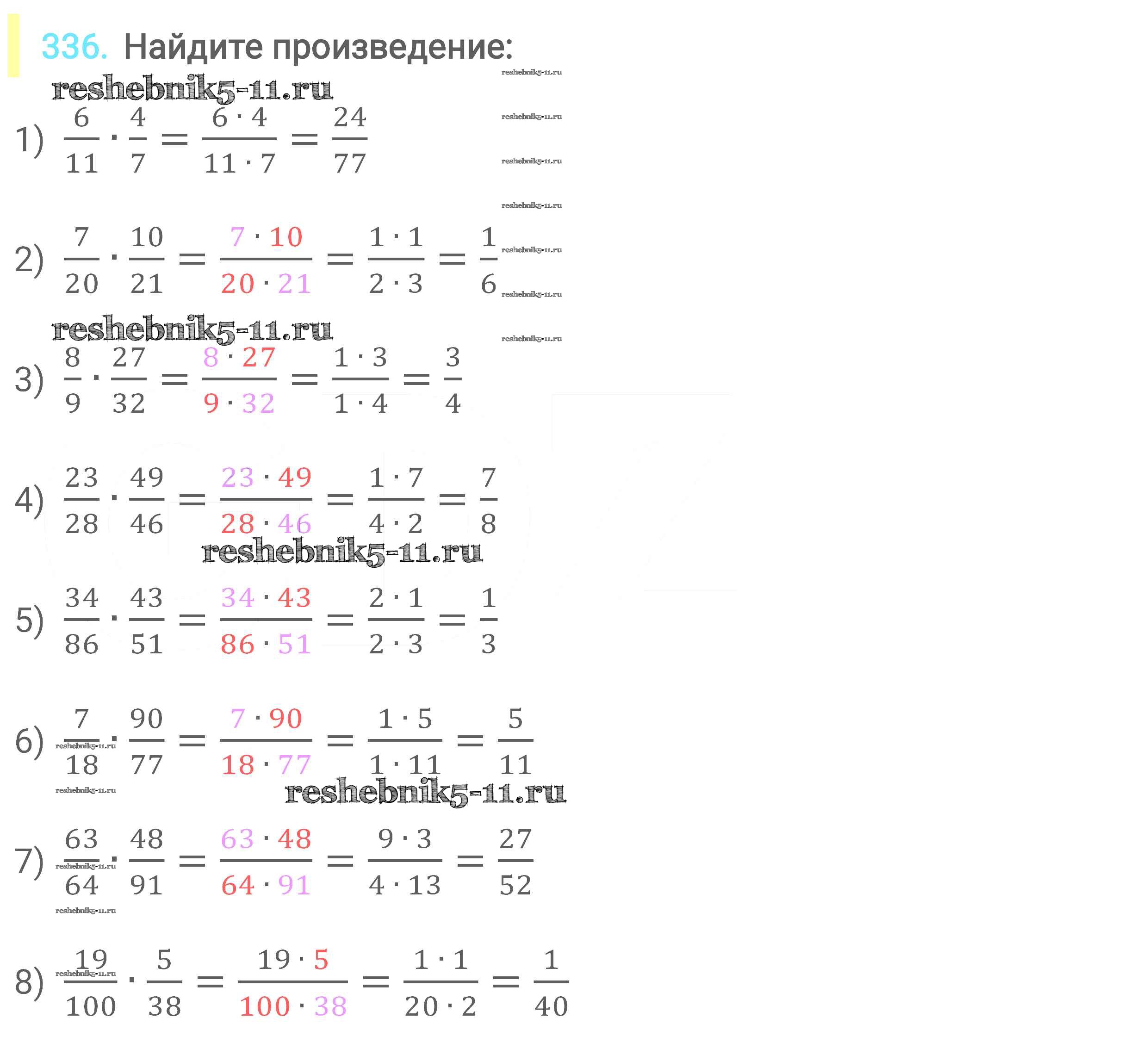 Готовая домашняя работа с ответами по Математике за 6 класс Мерзляк, Полонский, Якир Учебник Алгоритм успеха Вентана-граф 2016 ФГОС - Глава 2. Обыкновенные дроби (упражнения) 336