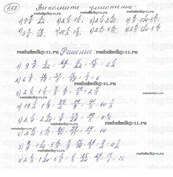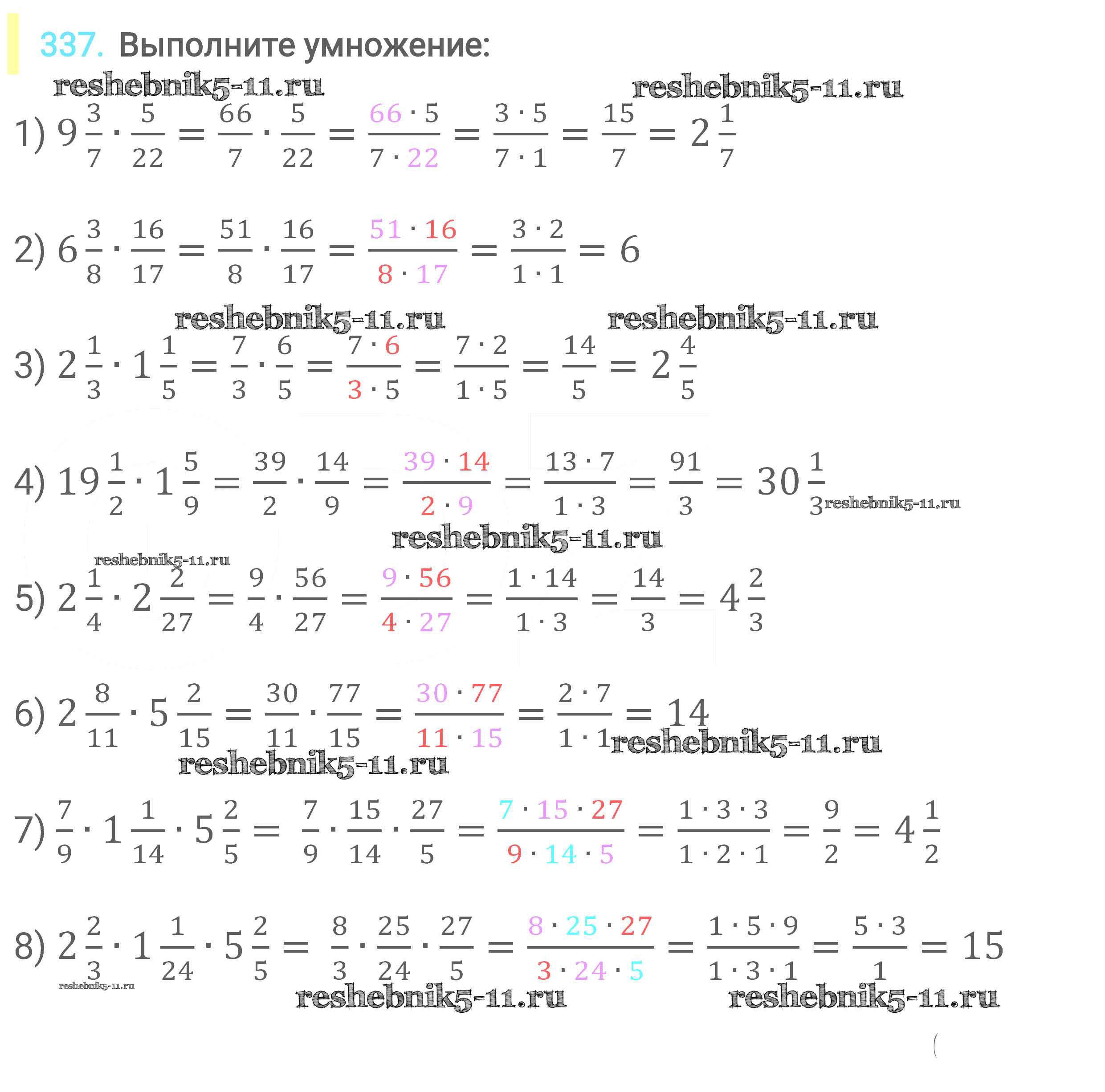 Готовая домашняя работа с ответами по Математике за 6 класс Мерзляк, Полонский, Якир Учебник Алгоритм успеха Вентана-граф 2016 ФГОС - Глава 2. Обыкновенные дроби (упражнения) 337
