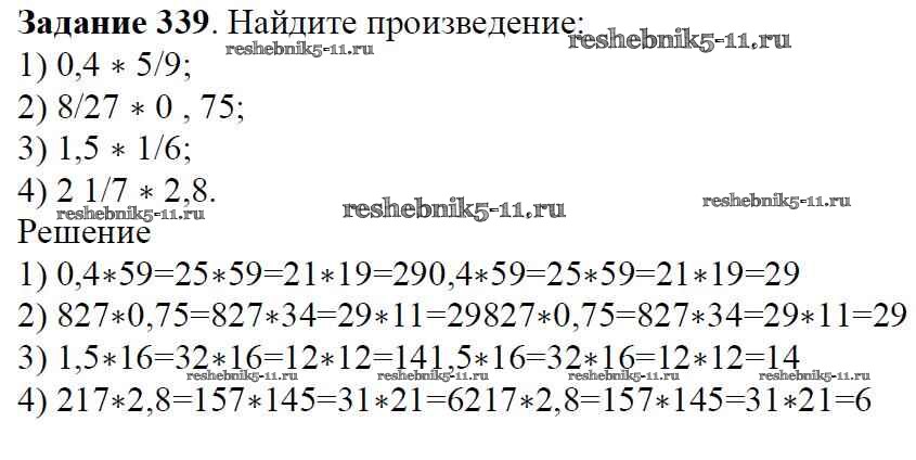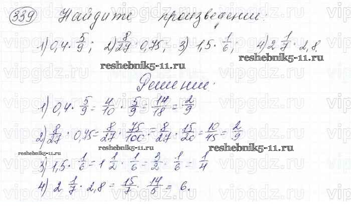 Готовая домашняя работа с ответами по Математике за 6 класс Мерзляк, Полонский, Якир Учебник Алгоритм успеха Вентана-граф 2016 ФГОС - Глава 2. Обыкновенные дроби (упражнения) 339