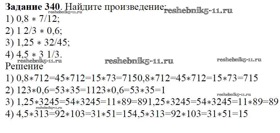 Готовая домашняя работа с ответами по Математике за 6 класс Мерзляк, Полонский, Якир Учебник Алгоритм успеха Вентана-граф 2016 ФГОС - Глава 2. Обыкновенные дроби (упражнения) 340
