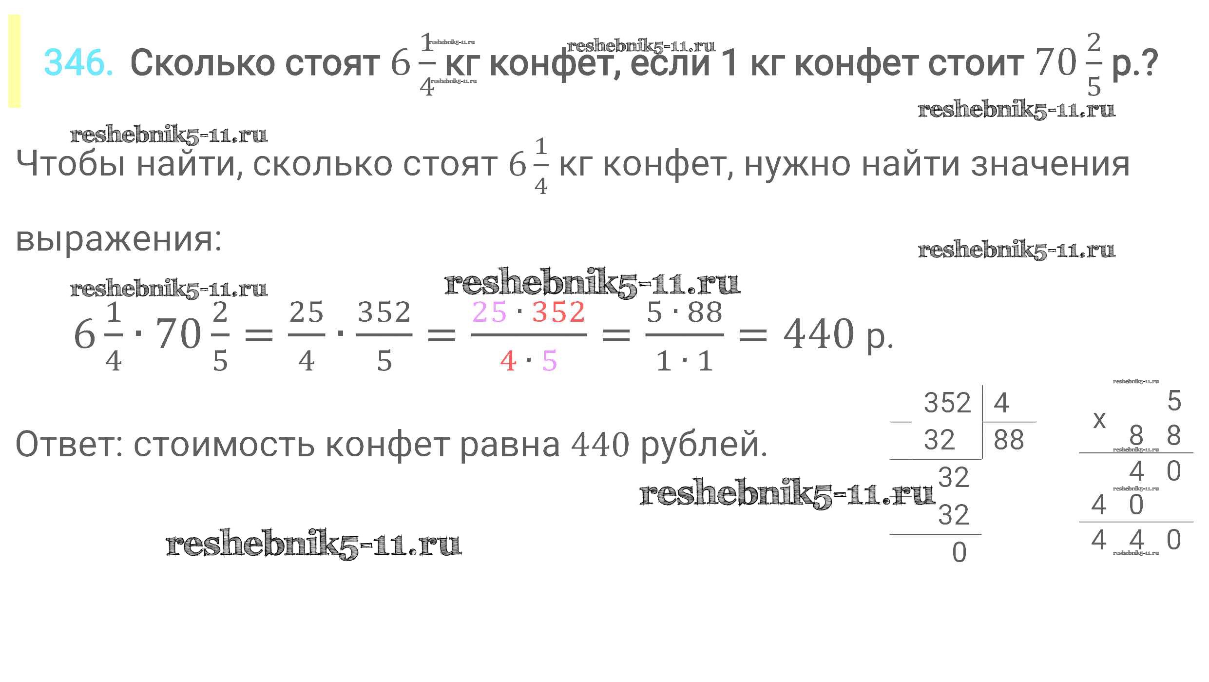 Готовая домашняя работа с ответами по Математике за 6 класс Мерзляк, Полонский, Якир Учебник Алгоритм успеха Вентана-граф 2016 ФГОС - Глава 2. Обыкновенные дроби (упражнения) 346