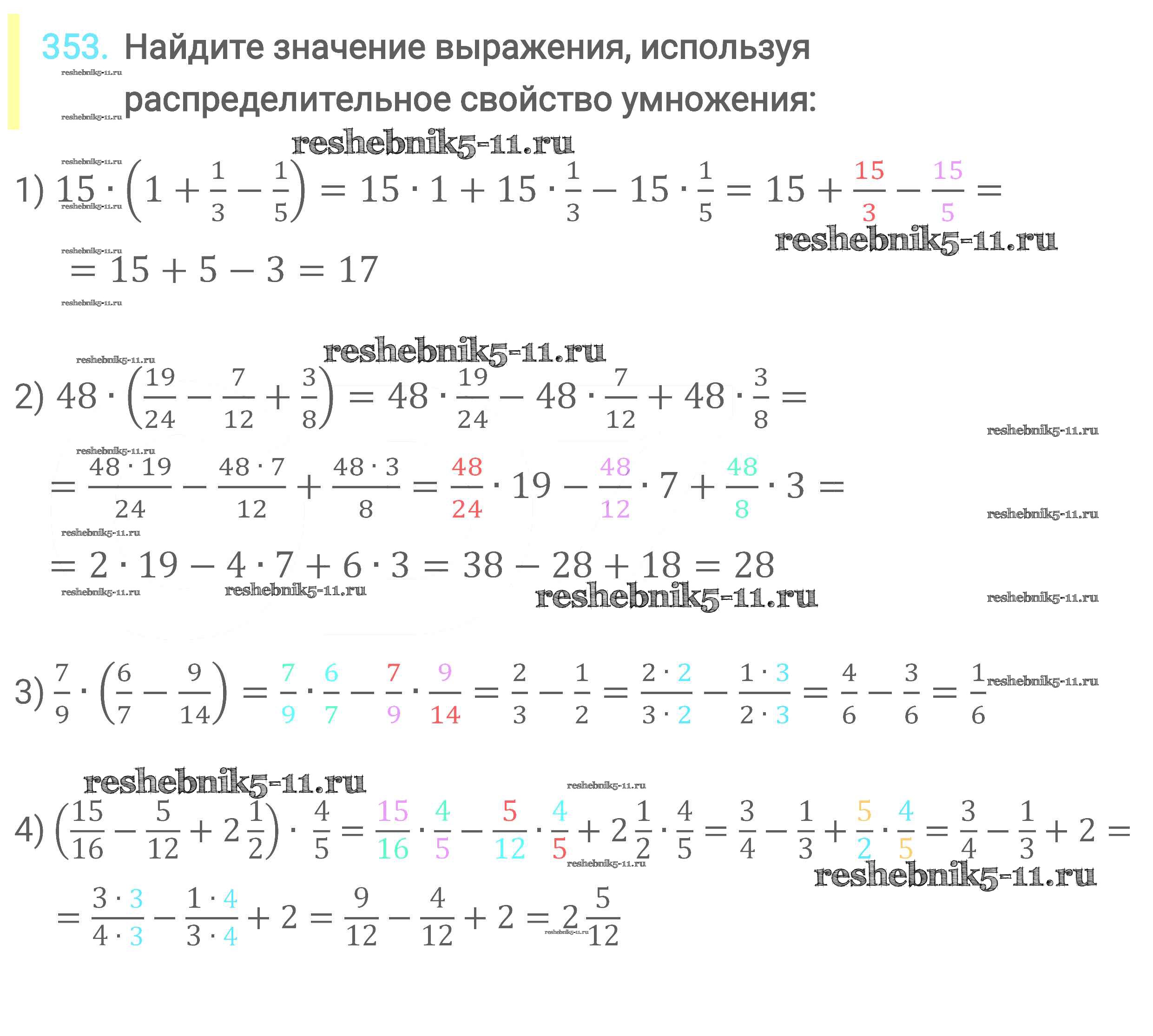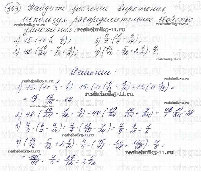 Готовая домашняя работа с ответами по Математике за 6 класс Мерзляк, Полонский, Якир Учебник Алгоритм успеха Вентана-граф 2016 ФГОС - Глава 2. Обыкновенные дроби (упражнения) 353